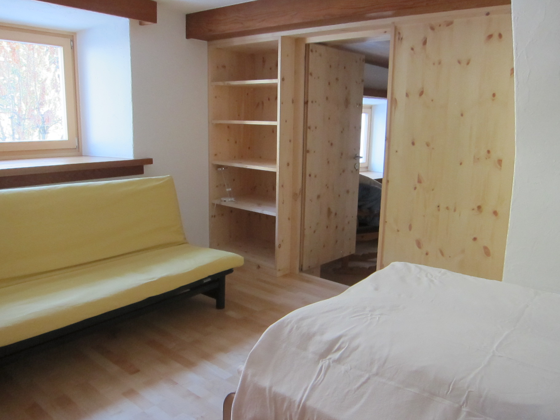 Wohnstube mit traditionellem Arvenholz-Täfer mit Zusatzbett, DVD u Radio; 3 Schlafzimmer für max 8 Personen (Kinderbett auf Anfrage), grosse, neu renovierte Wohnküche mit Elektro- und Holzherd, Geschirrspüler, Badezimmer modern (mit Bodenheizung) mit Dusche, helle, gedeckte Veranda, Zentralheizung, Waschmaschine zur Mitbenutzung, Garten zur Mitbenutzung, geeignet für Kinder, Internet vorhanden