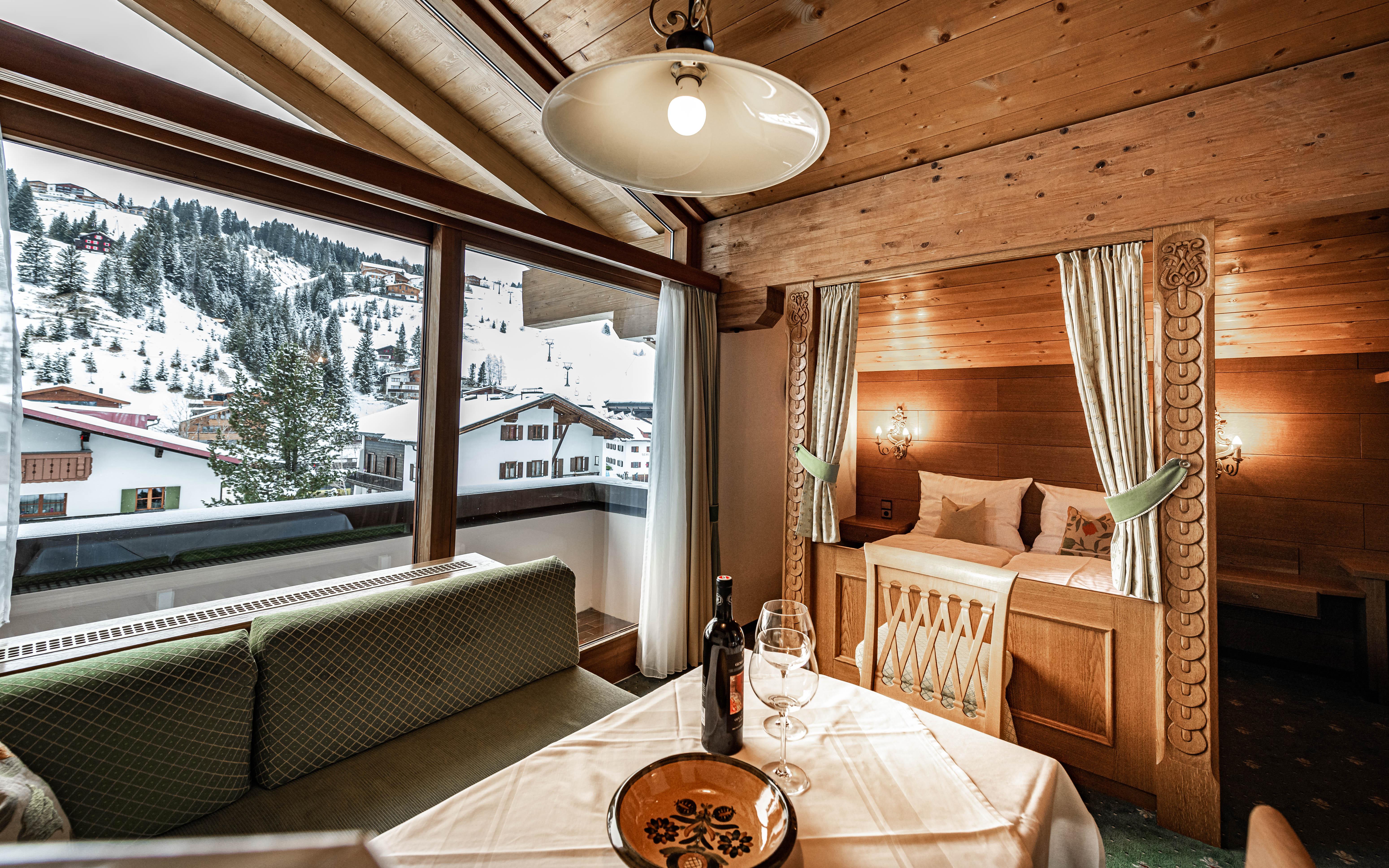 Type 2 Appartement ca. 38 m2 Unsere schönen Dachgeschoßwohungen bieten Platz für 2 Personen mit vollem Komfort und tollen Ausblicken nach Oberlech oder zum Rüfikopf. Ihnen stehen ein Wohn-Schlafraum mit Doppelbett, eine vollausgestattete Küche und ein eigenes Badezimmer mit Dusche, WC und ein Balkon zur Verfügung.