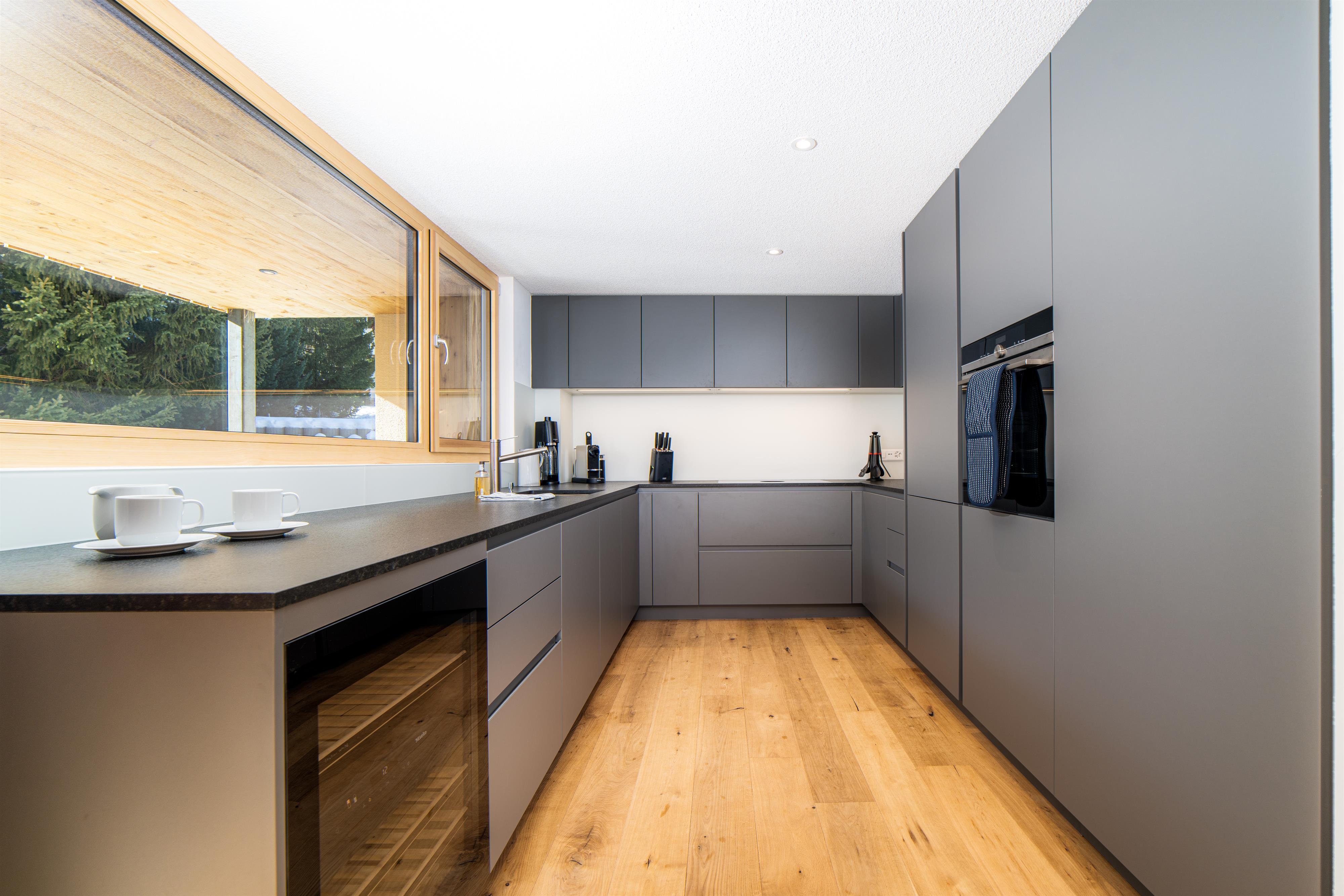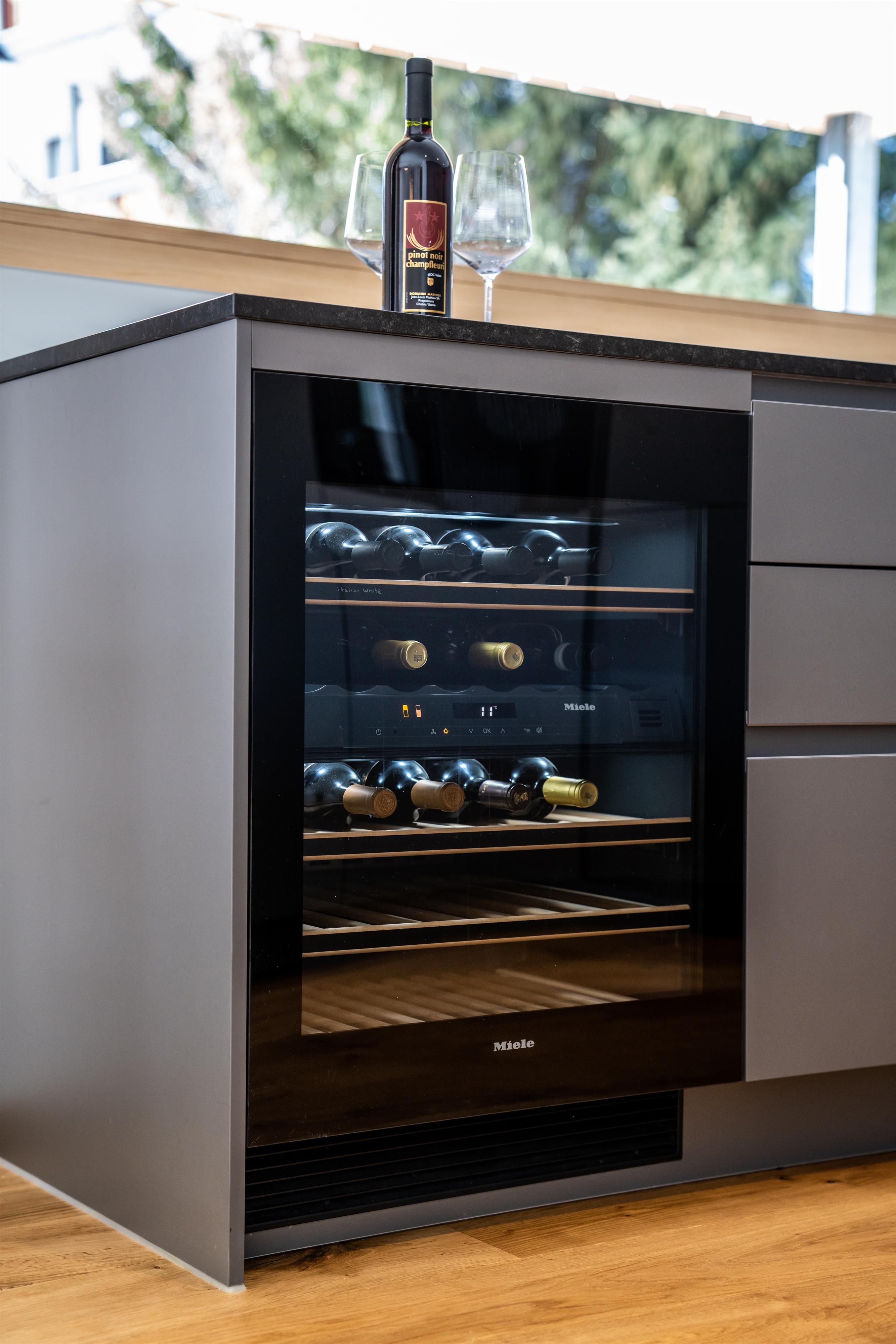 - Neben dem Wohnzimmer befindet sich die offene und moderne Küche mit hochwertigen Küchengeräten und Weinkühlschrank