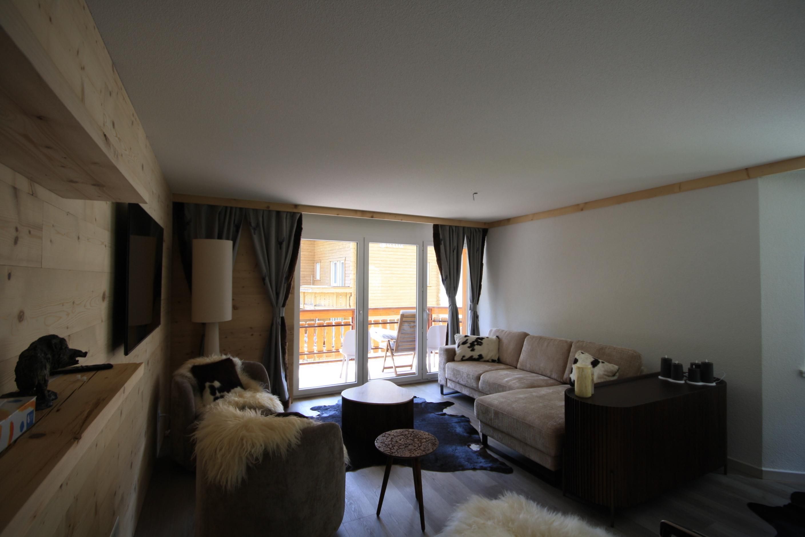 Dies ist unsere Chalet Wohnung. Ein Traum mit 3 Schlafzimmer und zwei großen Badezimmer mit Dusche und Badewanne. Kunstvoll eingerichtet mit Geschmack und Style. Ein grosses Wohnzimmer mit TV und Kamin sowie ein schönes grosses Esszimmer mit Küche, lässt keinen Partywunsch vorweg. Der Balkon schenkt Ihnen jeden Tag den direkten Blick auf die Skipisten.