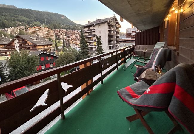 Geniessen Sie einen grossen, möblierten Eckbalkon mit Südausrichtung, der einen atemberaubenden Blick auf Tracouet, Nendaz bietet. Der ideale Ort zum Sonnenbaden, auch im Winter!