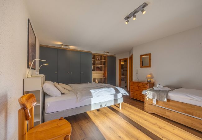 Sie verfügt über ein Schlafzimmer mit einem Doppelbett (das in zwei Einzelbetten getrennt werden kann), ein Schlafzimmer mit zwei Einzelbetten (die zu einem Doppelbett zusammengeschoben werden können) sowie ein grosses Familienzimmer mit einem Doppelbett und einem Einzelbett.