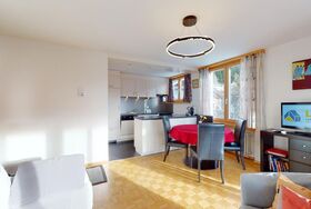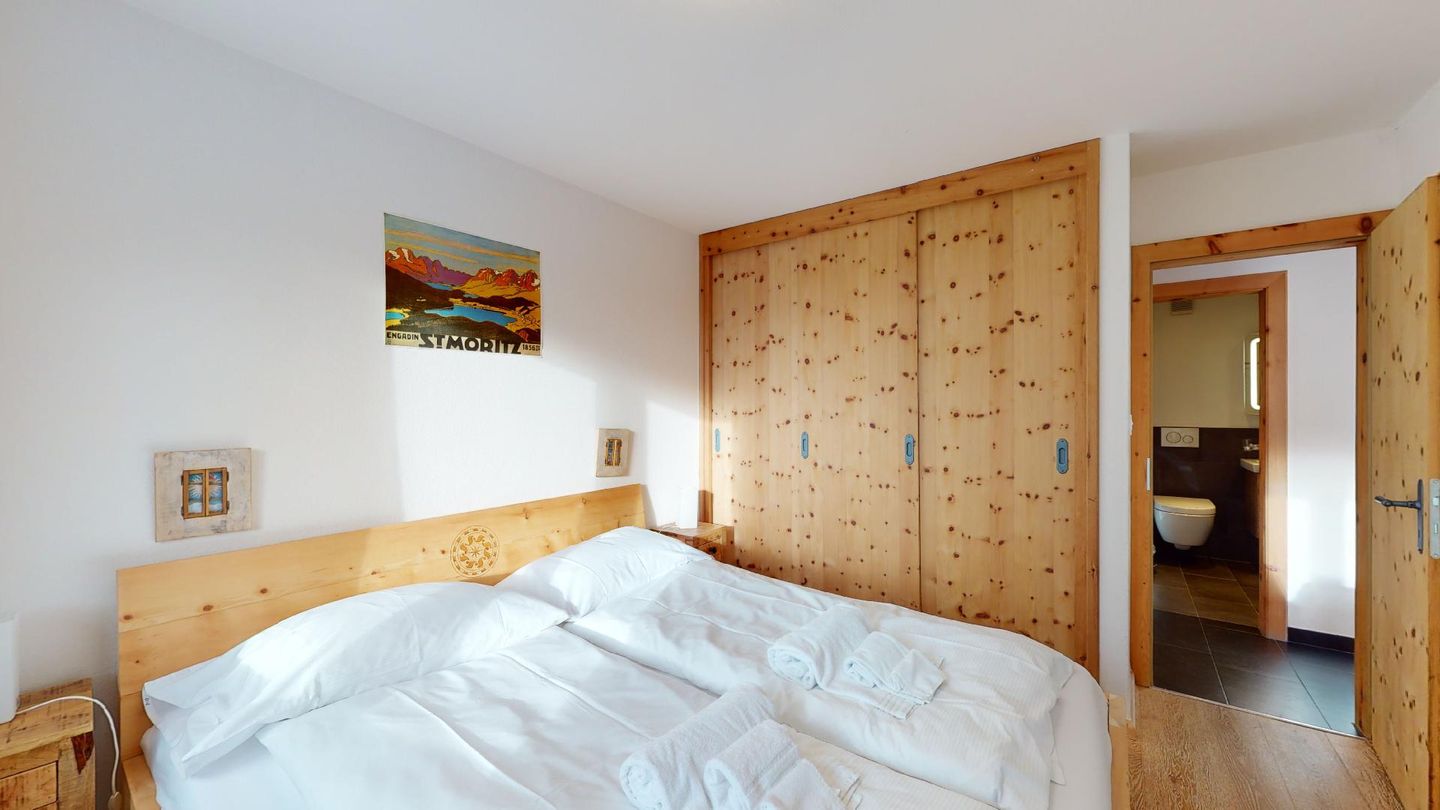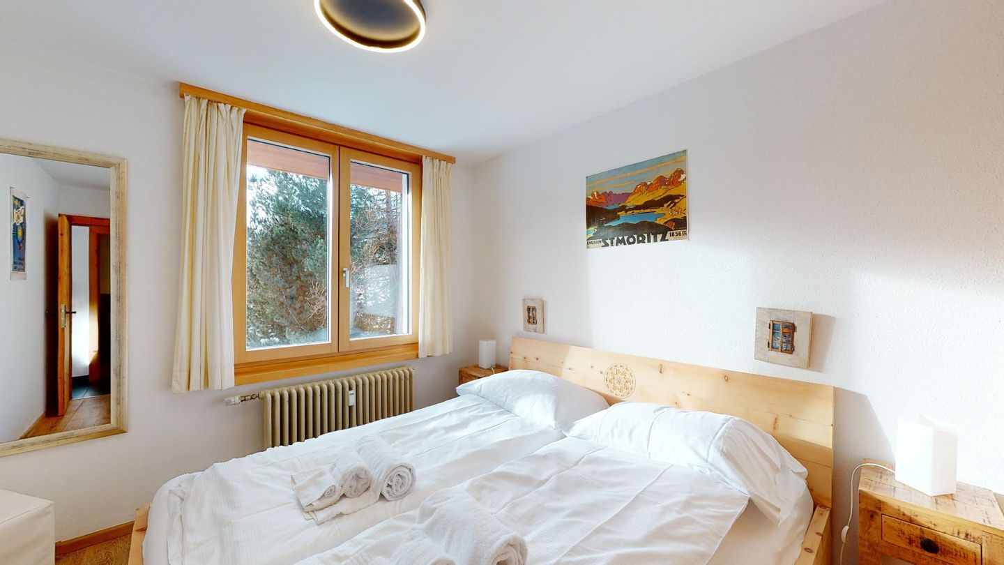 Helle 2-Zimmerwohnung mit ca. 45m2 im 1. Stock (2. Halbgeschoss), in ruhiger Lage in Surlej nahe der Corvatschbahn. Entrée mit Arven Garderobenschrank. Geräumiges Wohnzimmer (Parkettboden) mit rundem Esstisch für 4 Personen, 2 Sessel sowie einem Schlafsofa (140x200). Sideboard mit Radio und Flachbild TV, direkter Ausgang zum Balkon Richtung Süden mit Bergsicht. Neue Küche mit 4 Herdplatten, Backofen, Geschirrspülmaschine, Wasserkocher und Chicco d`Oro Kaffeemaschine. Fondue und Raclette-Ofen vorhanden. Schlafzimmer (Parkettboden) mit Doppelbett (2 Matratzen 90x190), Einbauwandschrank in Arvenholz, Fenster mit Blick Richtung Süden. Neue renoviertes Badezimmer (2016) mit Badewanne / WC / Lavabo. Waschmaschine und Skiraum zur Mitbenutzung. Kein Veloraum. Aussenparkplatz. Nichtraucherwohnung. Haustiere sind nicht erlaubt.