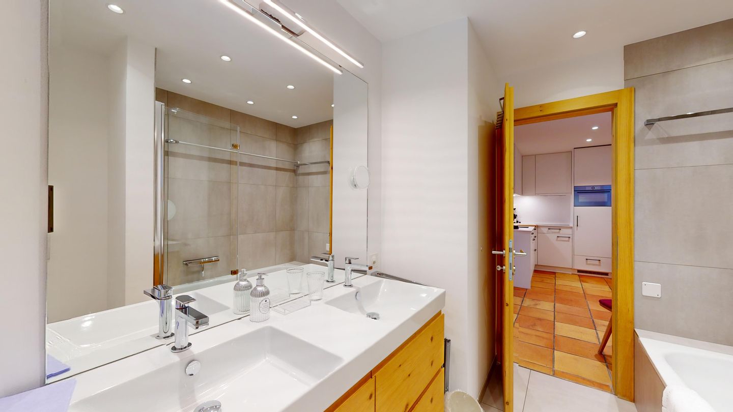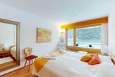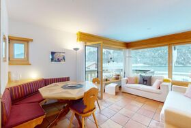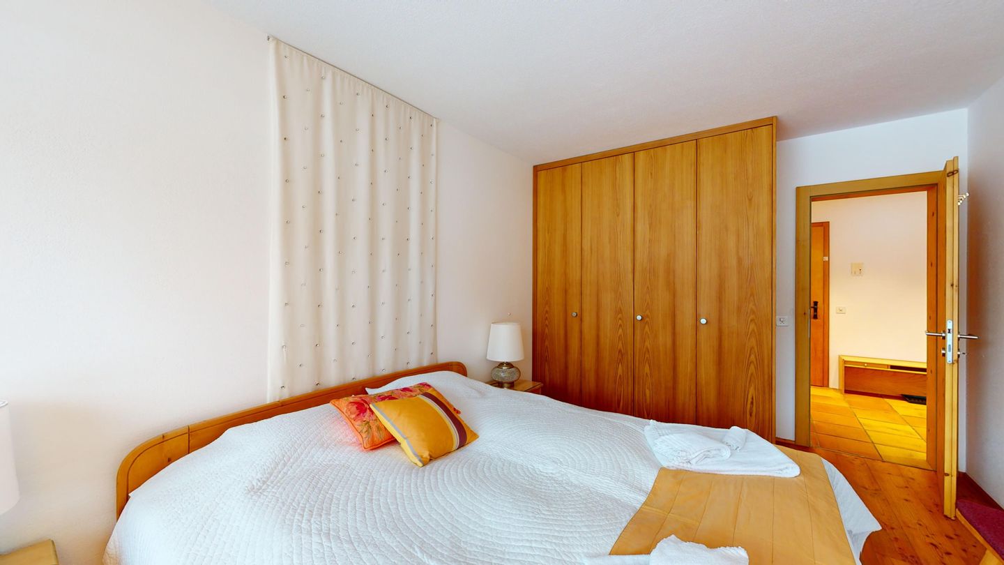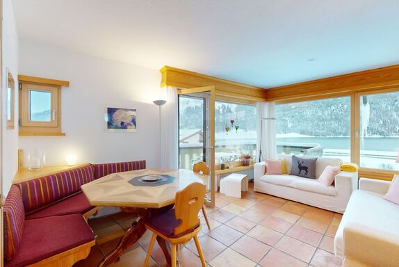 2-Zimmerwohnung im 1. Stock ca. 55 m2. Entrée, offene Küche mit Backofen und Geschirrspüler. Nespresso-Kaffeemaschine. Doppelzimmer mit zwei Einzelmatratzen. Bad/Doppellavabo/WC. Wohn-/Esszimmer mit TV. Balkon mit freier Sicht auf die Berge und den See. Balkonmöbeln vorhanden. Rustikale und komfortable Einrichtung. Waschraum zur Mitbenützung im 2. Untergeschoss in der Tiefgarage. Garagenplatz. Haustiere sind nicht erlaubt.