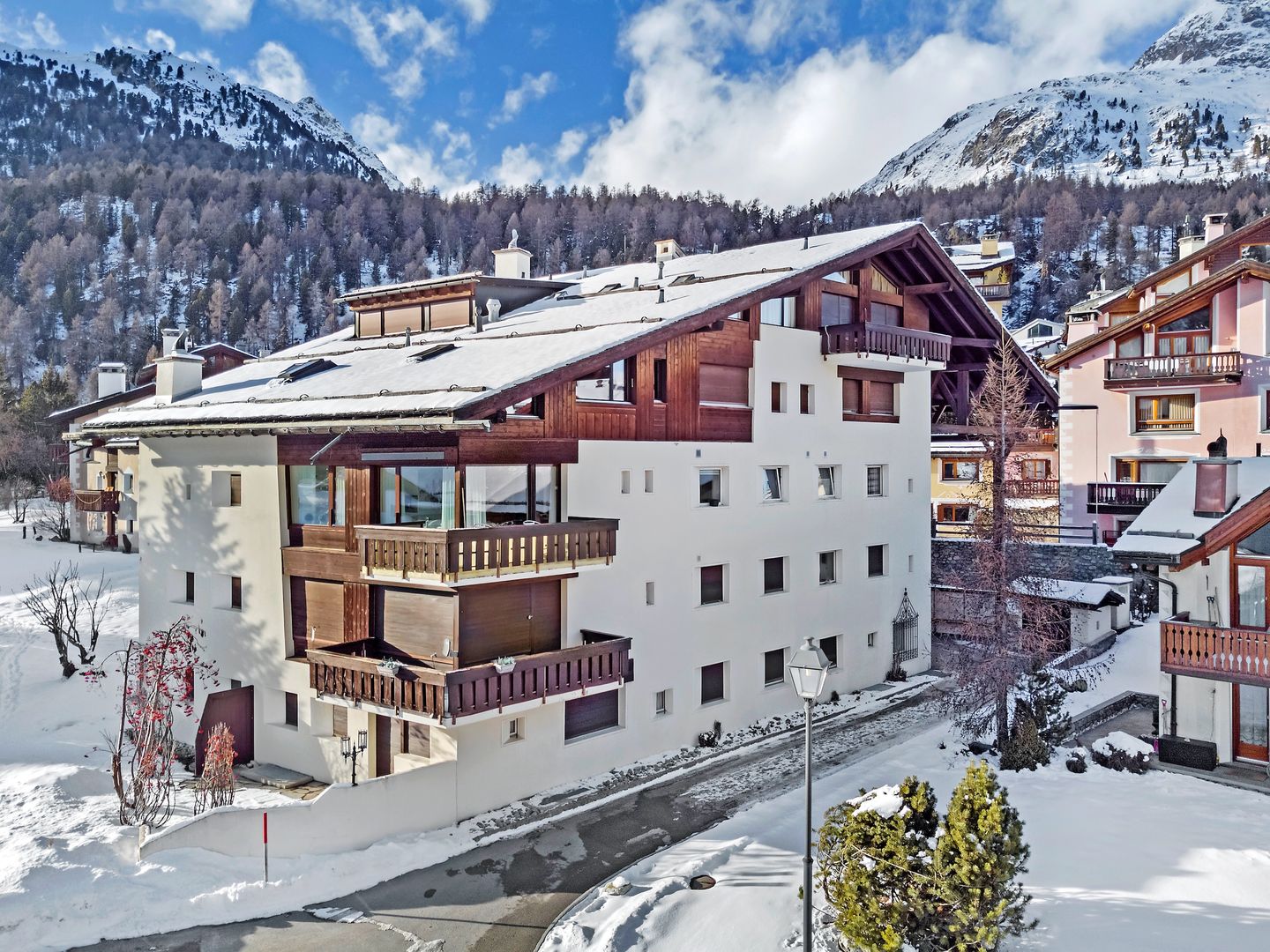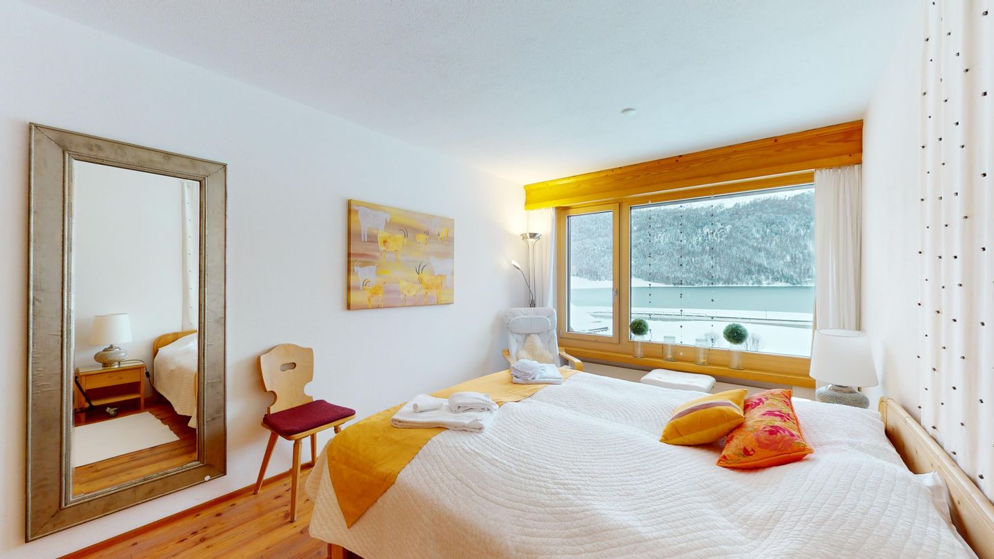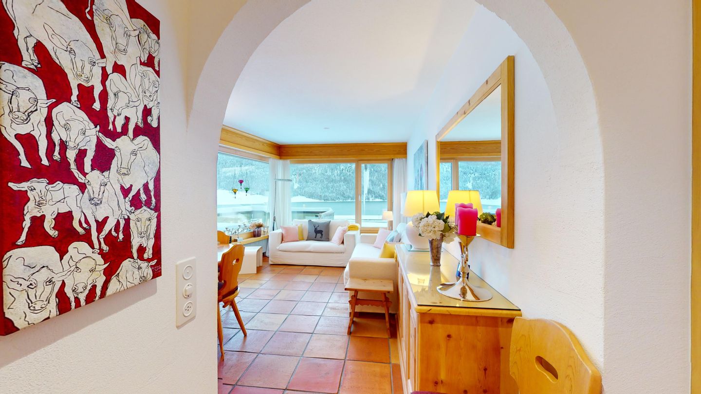 Die Chesa Armonia Muntagnarda, Baujahr 1977, wurde im Engadinerstil gebaut. Das Haus liegt im Zentrum von Silvaplana, an ruhiger und sonniger Lage. Langlaufloipen finden Sie in 100m Entfernung. Wanderwege befinden sich in unmittelbarer Umgebung. Das Sportzentrum Mulets ist ca. 5 Gehminuten entfernt, wo Sportarten wie Curling, Schlittschuhlaufen, Eishockey, Tennis, Kraft- und Ausdauertraining, Segeln und Surfen ausgeübt werden können. Im Sportzentrum gibt es ein nettes Restaurant und Camping Möglichkeiten. Der Corvatsch, Skigebiet im Winter und Ausgangspunkt vieler Wanderungen im Sommer, befindet sich auf der rechten Seeseite im Dorfteil Surlej, ca. 700m entfernt. Der Sportbus fährt im Winter jede halbe Stunde in alle Richtungen. Viele andere Winter- und Sommersportarten können im 5 km entfernten St. Moritz ausgeübt werden.