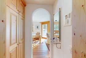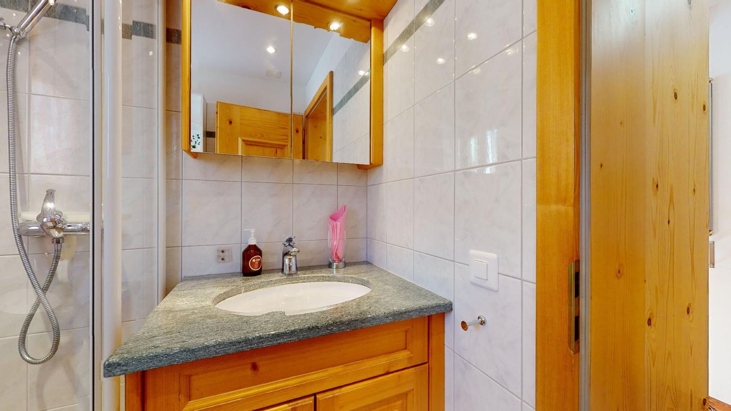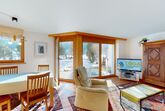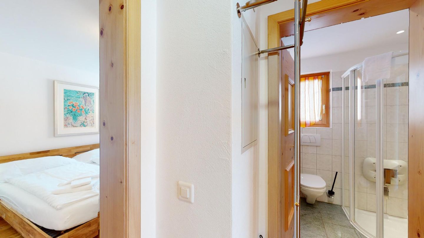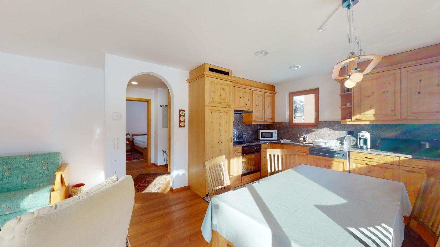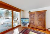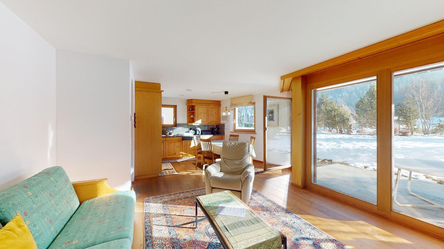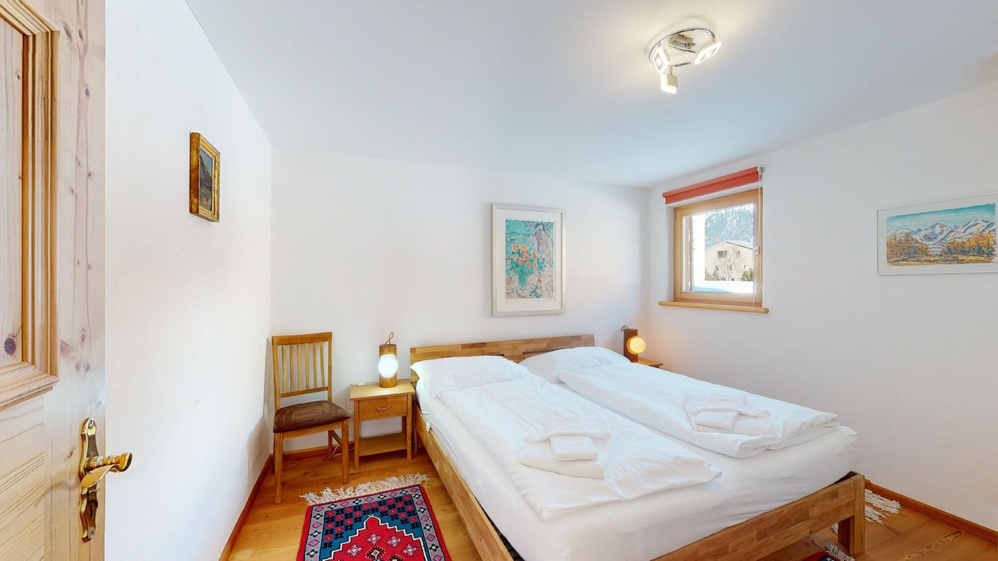 2-Zimmerwohnung im Erdgeschoss, mit ca. 60 m2. Eingang mit Garderobe. Ess-/ Wohnzimmer mit Schlafsofa (zwei Einzelmatratzen) und direktem Ausgang zum Gartensitzplatz. Offene Küche mit Backofen, Mikrowelle, Chicco d'Oro Kaffeemaschine, Geschirrspüler, Racletteofen und Kühlschrank. Ein Doppelzimmer (2x 90cm x 200cm). Radio, CD-Player, TV, DVD, Internet. Dusche (behindertengerecht), WC, Lavabo mit Fenster. Komfortable Einrichtung. Garagenplatz. Waschküche und Skiraum zur Mitbenützung. Haustiere sind nicht erlaubt. Speziell: Sauna und Aufenthalts- Spielraum im Haus.
