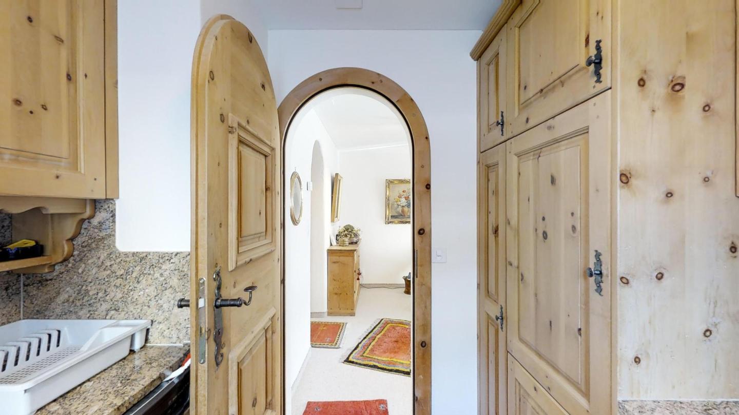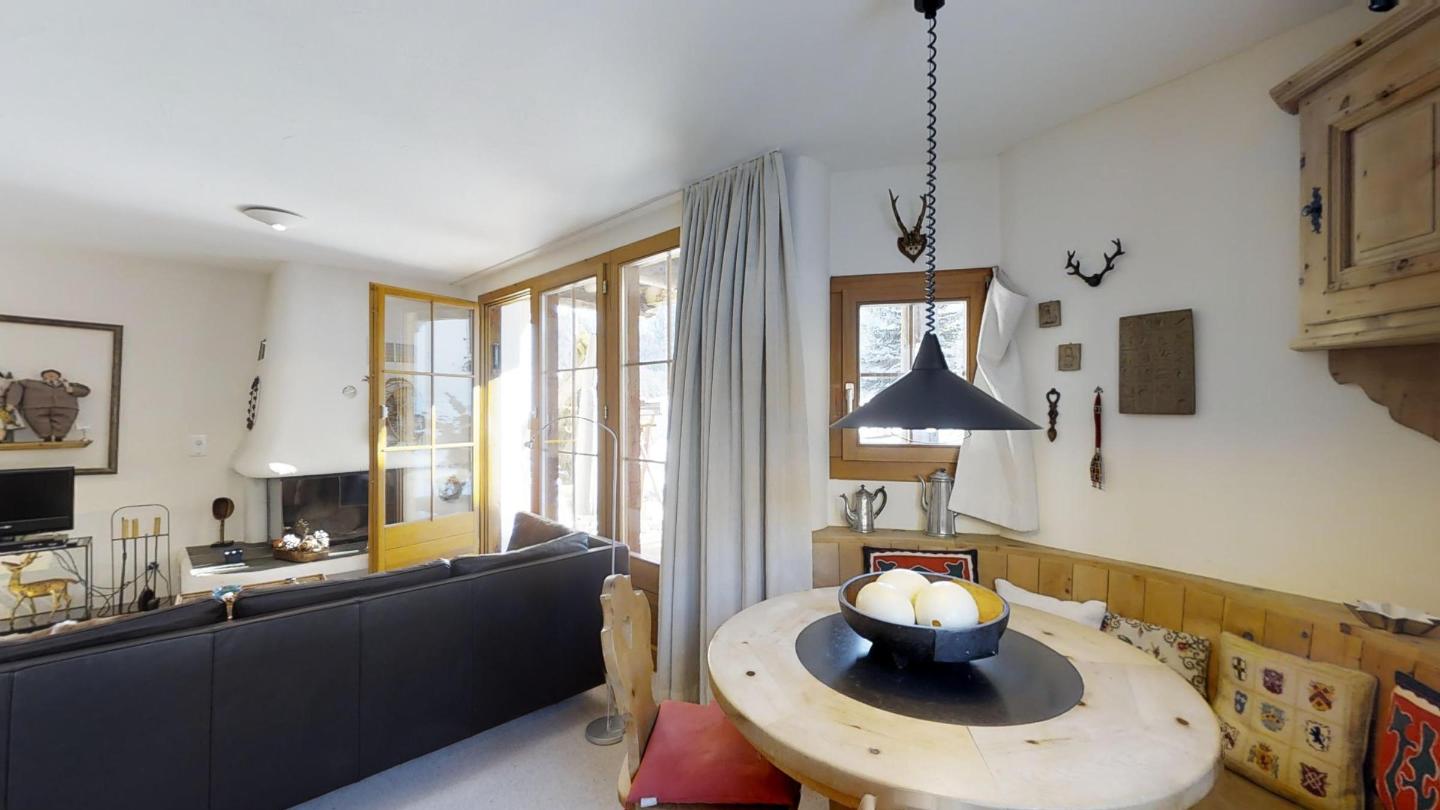 2½-Zimmerwohnung im Erdgeschoss, 68 m2. Sonniges Wohn-/ Esszimmer mit zwei Schlafmöglichkeiten (Schrankbetten) und Kamin. Abgeschlossene Küche mit Geschirrspüler und Backofen. Kaffeemaschine CHICCO D'ORO. Grosser Sitzplatz mit freier Bergsicht, Südlage. Radio und Fernseher. Schlafzimmer mit Doppelbett. Bad/WC/Doppellavabo. Neue, komfortable Einrichtung. Garage. Waschküche und Skiraum zur Mitbenützung. Gartenmöbel vorhanden. Haustiere sind nicht erlaubt.