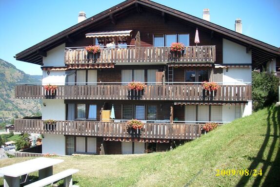 2-Zimmerwohnung in Mehrfamilienhaus, nicht autofreier Teil, Parkplatz vor dem Haus vorhanden. Die Wohnung liegt im 2. Stock und verfügt über 1 Schlafzimmer à 2 Bett, 1 LM grosses gemütliches Wohnzimmer mit TV/Radio, Küche (mit Geschirrspüler), Bad/WC. Im Zentrum von Grächen ist ebenfalls ein Parkplatz im Parkhaus Metropol mit Ablageschrank für Ski vorhanden Preis pro Tag 4,- Fr falls erwünscht melden Sie dies bitte bei der Buchung. Nichtraucher-Wohnung (Rauchen auf dem Balkon gestattet).