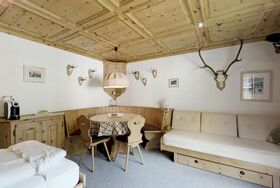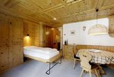 1-Zimmerwohnung im 2. Stock, ca. 38 m2, an ruhiger, sonniger Nordlage. Entree mit Kochnische, Kühlschrank und Backofen. Hübsches Wohn-/ Esszimmer mit zwei getrennten Schrankbetten (Arvenholz-Ausbauten). Balkon mit Sitzgelegenheit. Radio, Fernseher und Telefon. Bad/WC/Lavabo. Komfortable Einrichtung. Garagenplatz (Höhe max. 180 cm). Waschküche und Skiraum zur Mitbenützung. Haustiere sind nicht erlaubt.