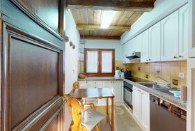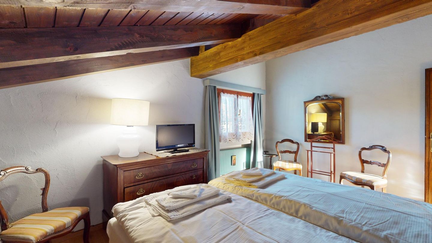 3-Zimmerwohnung im 3. Stock, ca. 80 m2. Eingang mit Garderobe. Grosses Wohn-/ Esszimmer mit Kamin und Südbalkon. TV, Radio und CD. Separate Küche mit Fenster, Backofen, Geschirrspülmaschine, Chicco d'Oro Kaffeemaschine, Toaster und Kühlschrank. Ein Doppelzimmer (160x190). Bad mit Badewanne/Bidet/Lavabo/WC. Vom Wohnzimmer führt eine Treppe zur geschlossenen Galerie, wo sich zwei Einzelbetten (2X80x190) sowie ein Bad mit Badewanne/WC/Lavabo befinden. Bügeleisen und Bügelbrett. Sehr komfortable Möblierung. Garagenplatz. Waschküche zur gemeinsamen Benützung. Haustiere sind nicht erlaubt. Anreise Samstag