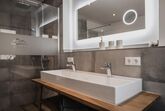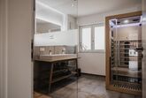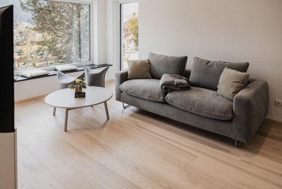 Das Appartement im Erdgeschoss befindet sich auf der Süd Ostseite des Hauses und verfügt über eine wunderschöne Terrasse mit eigenem Garten. Zwei Schlafzimmer sind mit komfortablen Zirbenholz-Doppelbetten ausgestattet, und im Wohnzimmer befindet sich zusätzlich eine Schlafcouch. Der Wohn- und Essbereich umfasst eine moderne, voll ausgestattete Küche mit Panoramasitzfenster und Ausblick auf die umliegende Bergwelt. Die Wohnung bietet ein Bad und ein separates WC sowie eine Infrarotkabine.