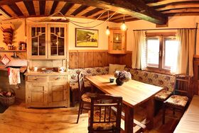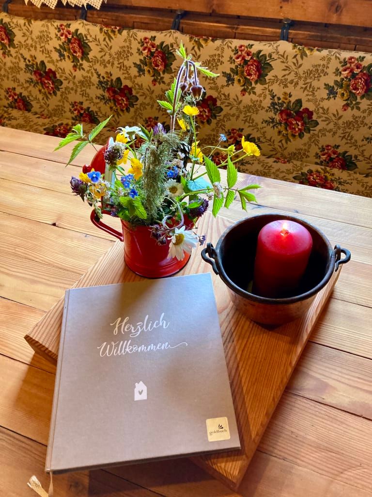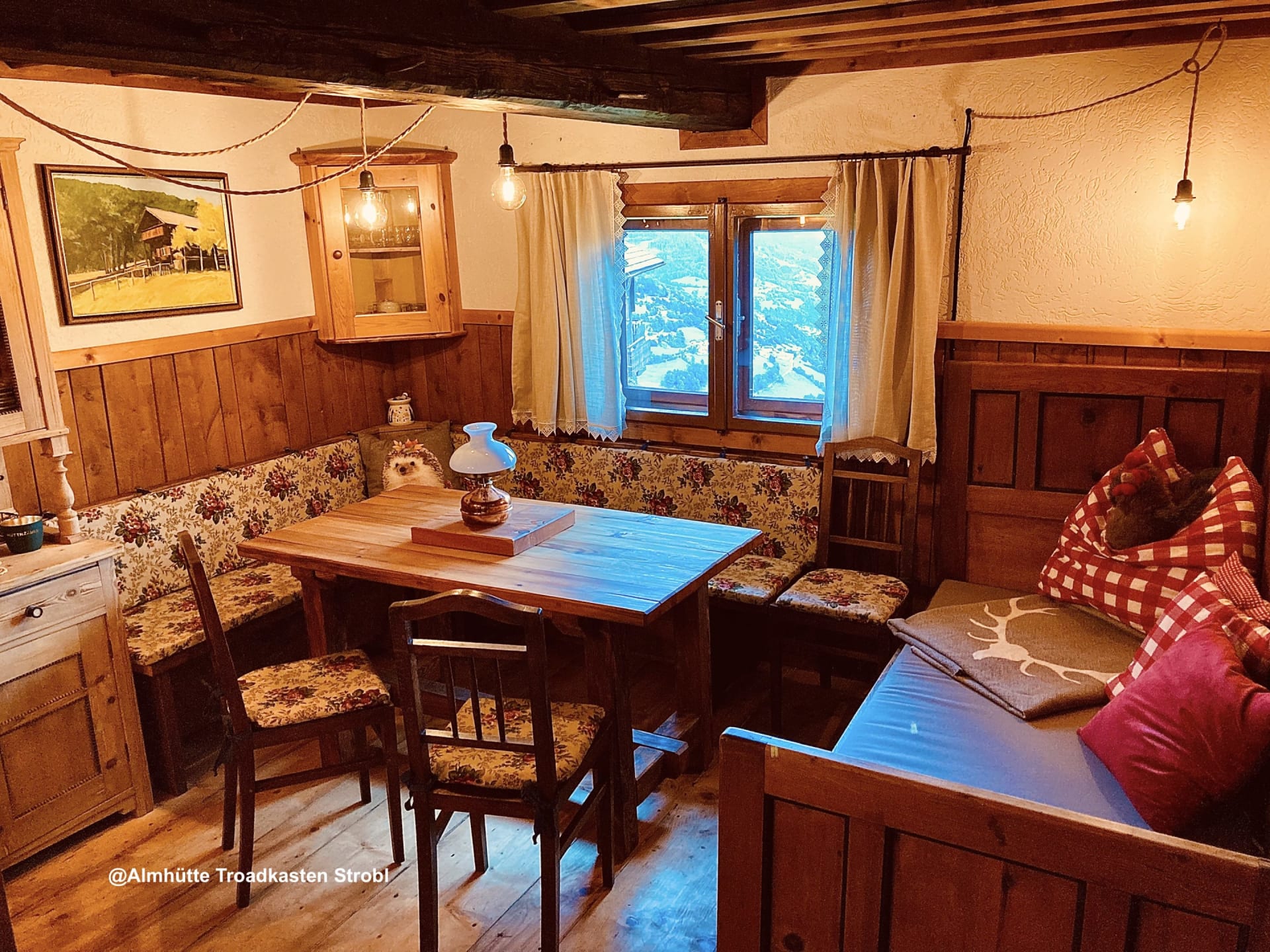 In der gemütlichen Bauernstube knistert ein behagliches Feuer im Holzofen. Neben der großzügigen Eckbank mit selbstgebautem Esstisch lädt das 100 Jahre alte Bett vom ehemaligen Großglockner-Haus zum Chillen ein.