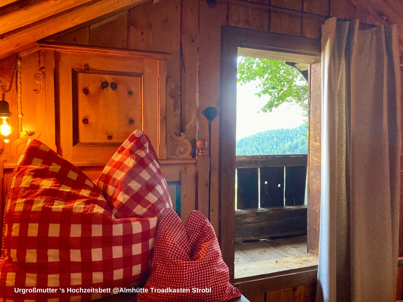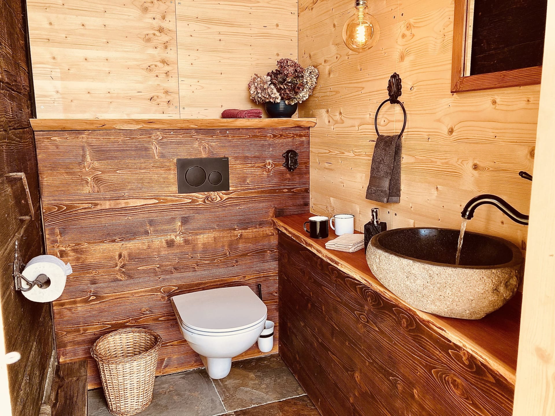 Der Kühlschrank mit Gefrierfach, sowie das frische Quellwasser zu Warmwasser aus der Abwasch-Armatur aufbereitet, sind für den rund 350 Jahre alten Troadkasten ein wahrer Luxus. Im neuen Zubau aus duftendem Lärchenholz vom eigenen Wald, findet ihr Dusche mit Fussbodenheizung und separatem WC.