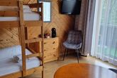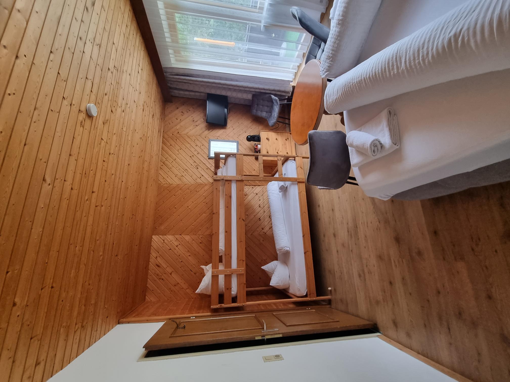 Familienzimmer mit 1 Doppelbett und einem Etagenbett, Balkon mit schöner Aussicht. Im Zimmer stehen Ihnen eine Kaffeemaschine und ein Wasserkocher zur Verfügung. Badezimmer mit Dusche und WC