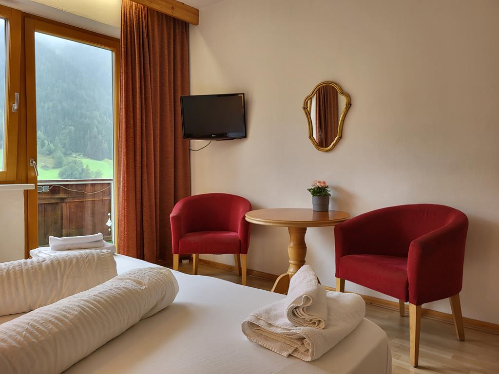 Vom Balkon Ihres sonnigen, weil südseitig gelegenen Zimmers, genießen Sie den Blick auf Neustift, den Stubaier Gletscher oder die imposante Bergwelt rundum.