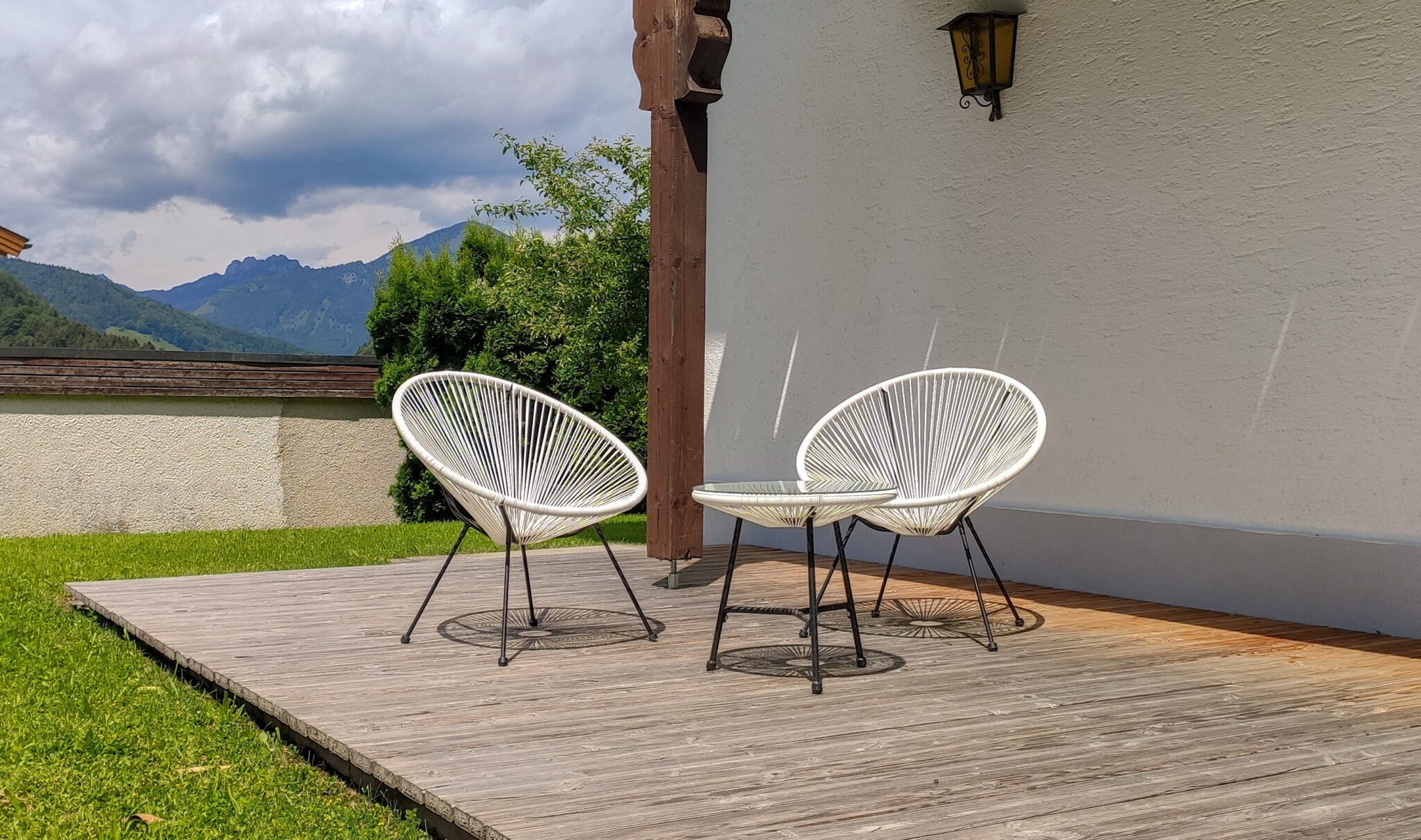 Die Terrasse lädt nicht nur zum Entspannen ein, sondern bietet auch genug Platz für gemütliche Stunden zu zweit oder mit Freunden. Ob beim Frühstück in der Morgensonne oder einem Glas Wein am Abend - hier ist Entspannung garantiert. Und wenn du mal keine Lust auf Aktivitäten hast, kannst du einfach bei einem guten Buch die Seele baumeln lassen.