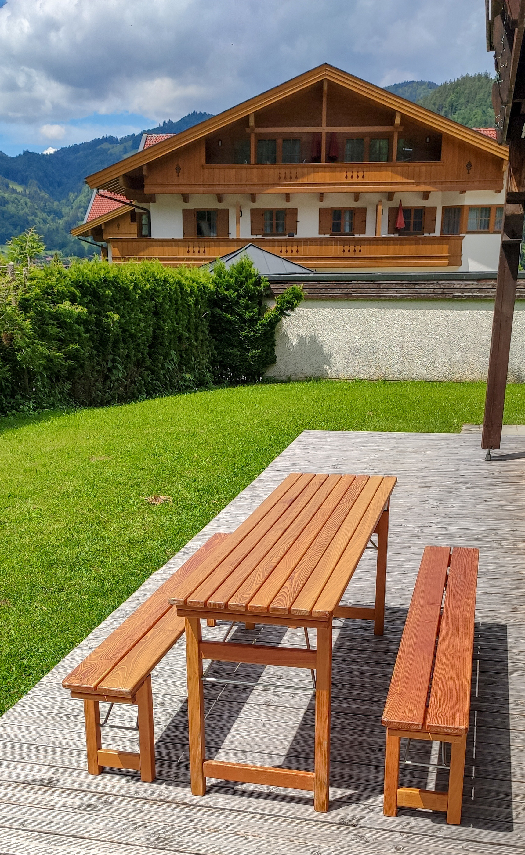 Das Apartment im Erdgeschoss besticht mit einer riesigen Terrasse auf der sonnigen Südseite. Hier kannst du von früh bis spät die wärmenden Strahlen genießen und den Blick auf das imposante Bergmassiv der Kampenwand schweifen lassen. Im Schlafzimmer weckt dich morgens sanft die Sonne, während du bereits den nächsten erlebnisreichen Tag planst.