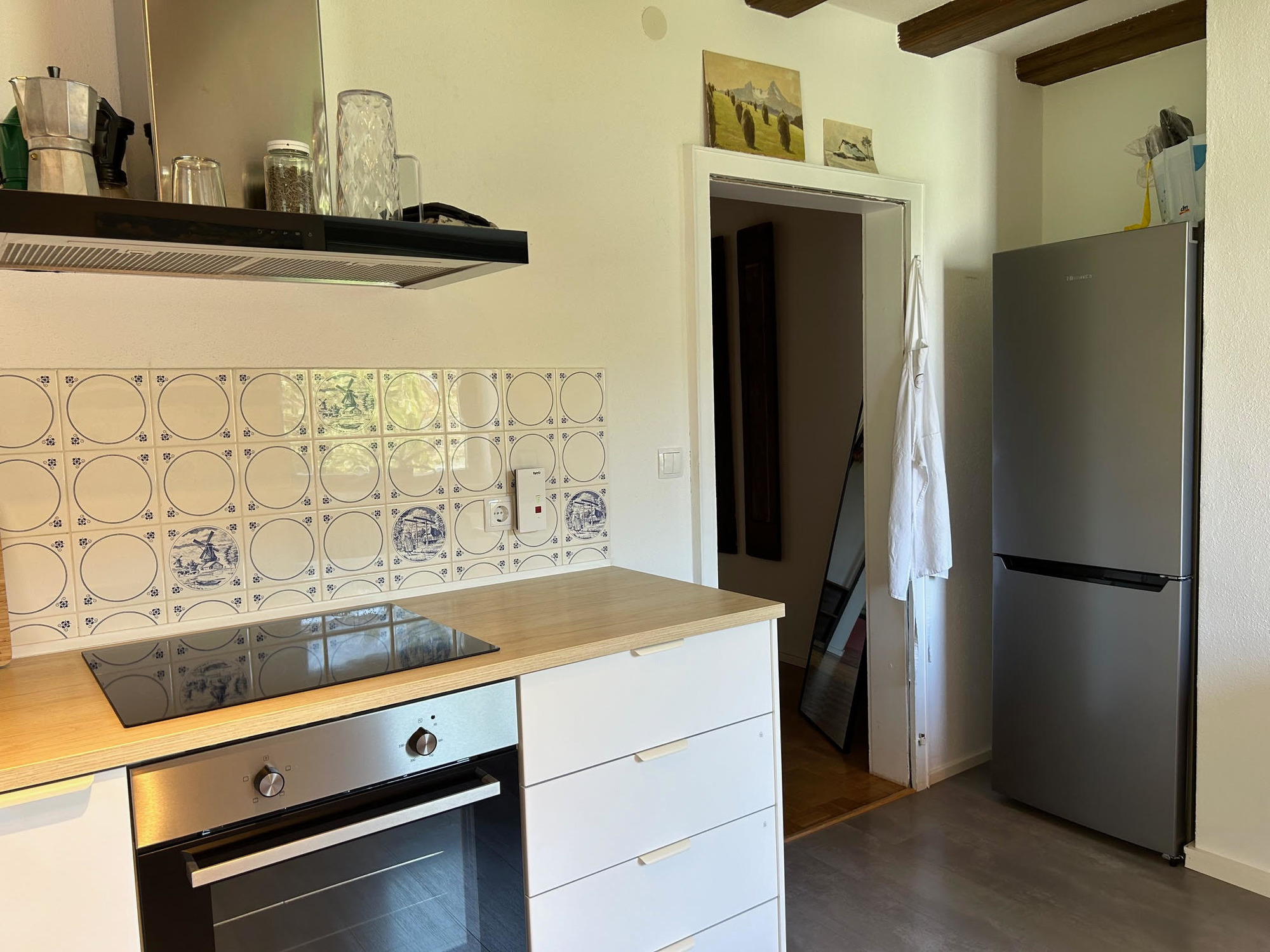 Die voll ausgestattete Wohnküche mit alpenländischer Essecke lädt zum gemeinsamen Kochen und Genießen ein. Von Herd über Kühlschrank bis hin zur Geschirrspülmaschine ist alles vorhanden, was das Herz begehrt. Im Wohnzimmer erwartet dich eine gemütliche Couch, ein Esstisch für gesellige Abende und ein großer Bildschirm mit Magenta-TV für entspannte Filmabende.