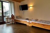 Die Essecke mit einer Eckbank und einem handgefertigten Eichentisch lädt zum Verweilen ein. Das großzügige Doppelbett (1,80m x 2,00m) kann mit den zwei Einzelbetten zu einem Daybed umfunktioniert werden. Außerdem gibt es einen Fernseher mit Magenta-TV für entspannte Filmabende. Vom Wohnraum gelangt man auf den sonnigen Balkon, der perfekt ist, um die Aussicht zu genießen.