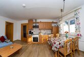 Appartement 1 Süd 52 m² im 1.Stock, jeweils geeignet für 2- 5 Pers.  Modern ausgestattet mit einer Wohnküche, Essecke, ausziehbare Doppelbettcouch, ein Schlafzimmer mit Doppelbett und Polsterliege, Diele Balkon ,DU/WC