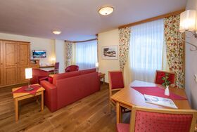 Schöne Suite mit einem Schlafzimmer für 2 Personen, großzügigem Wohnzimmer mit ausziehbarer Doppelcouch, Bad, getrenntem WC, Balkon, 2 Kabel-TV, Radio, Minibar, Föhn, Telefon, Zimmersafe, gratis W-Lan. Gerne liegen Bademäntel für dich bereit.