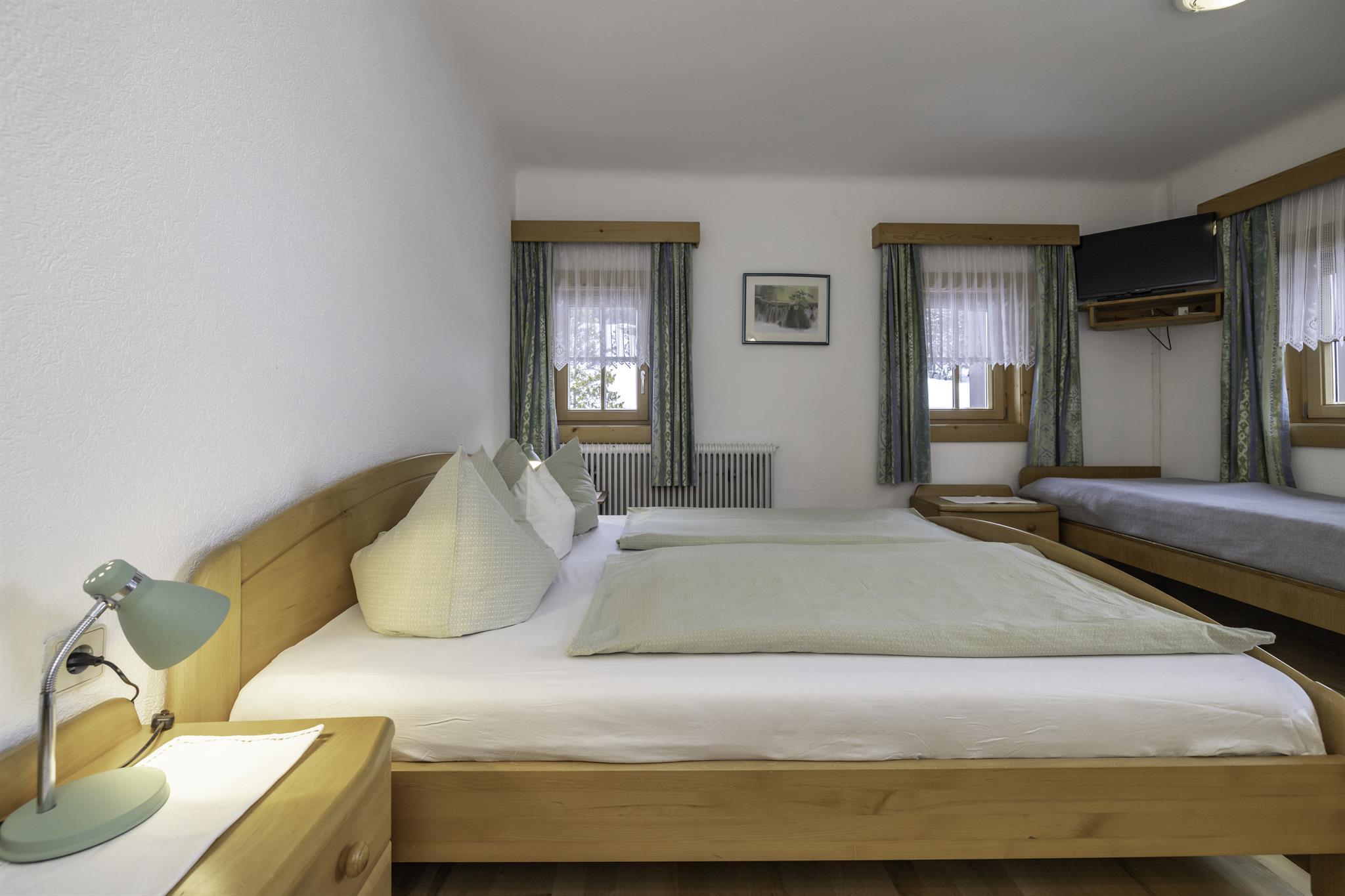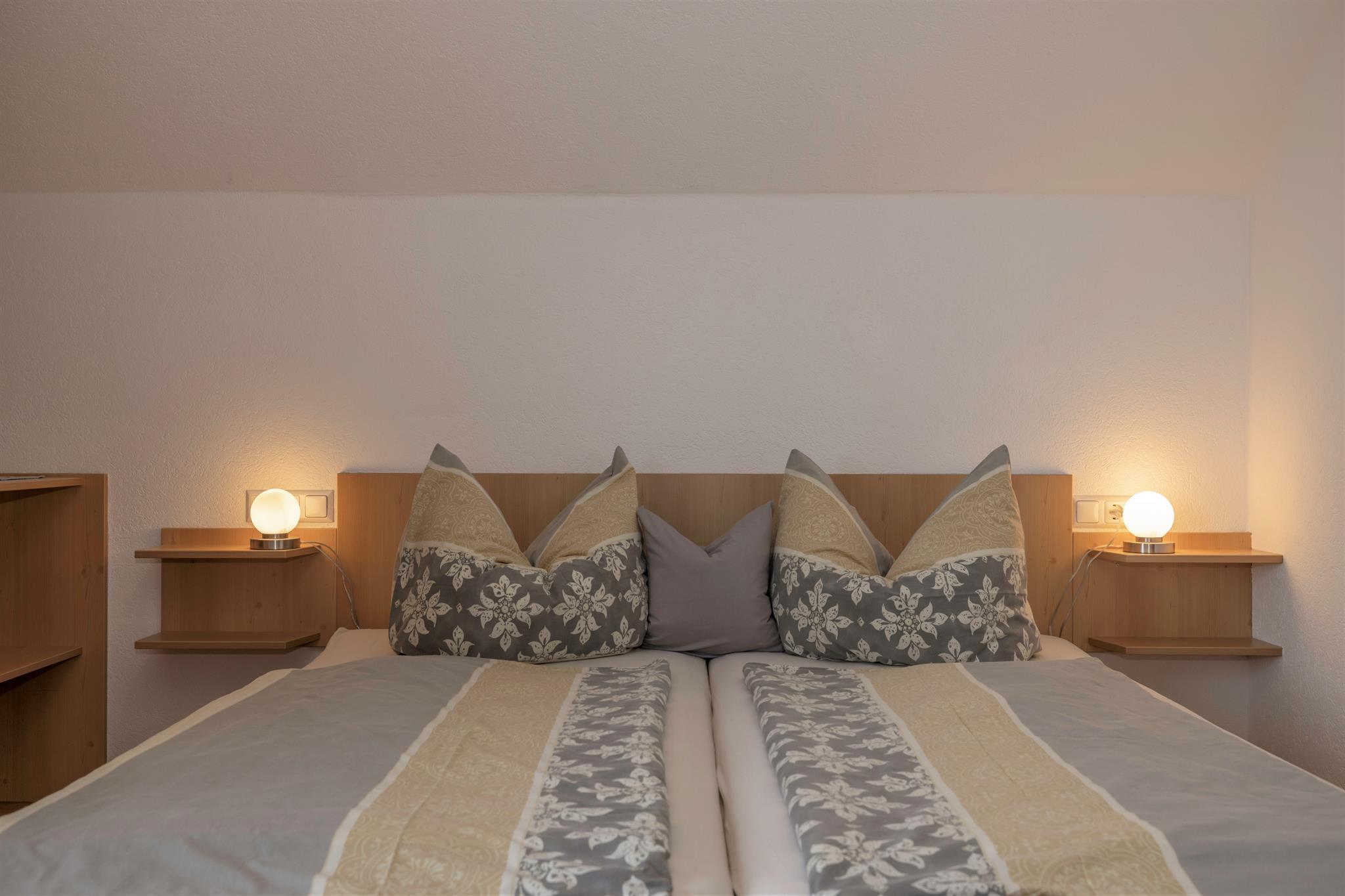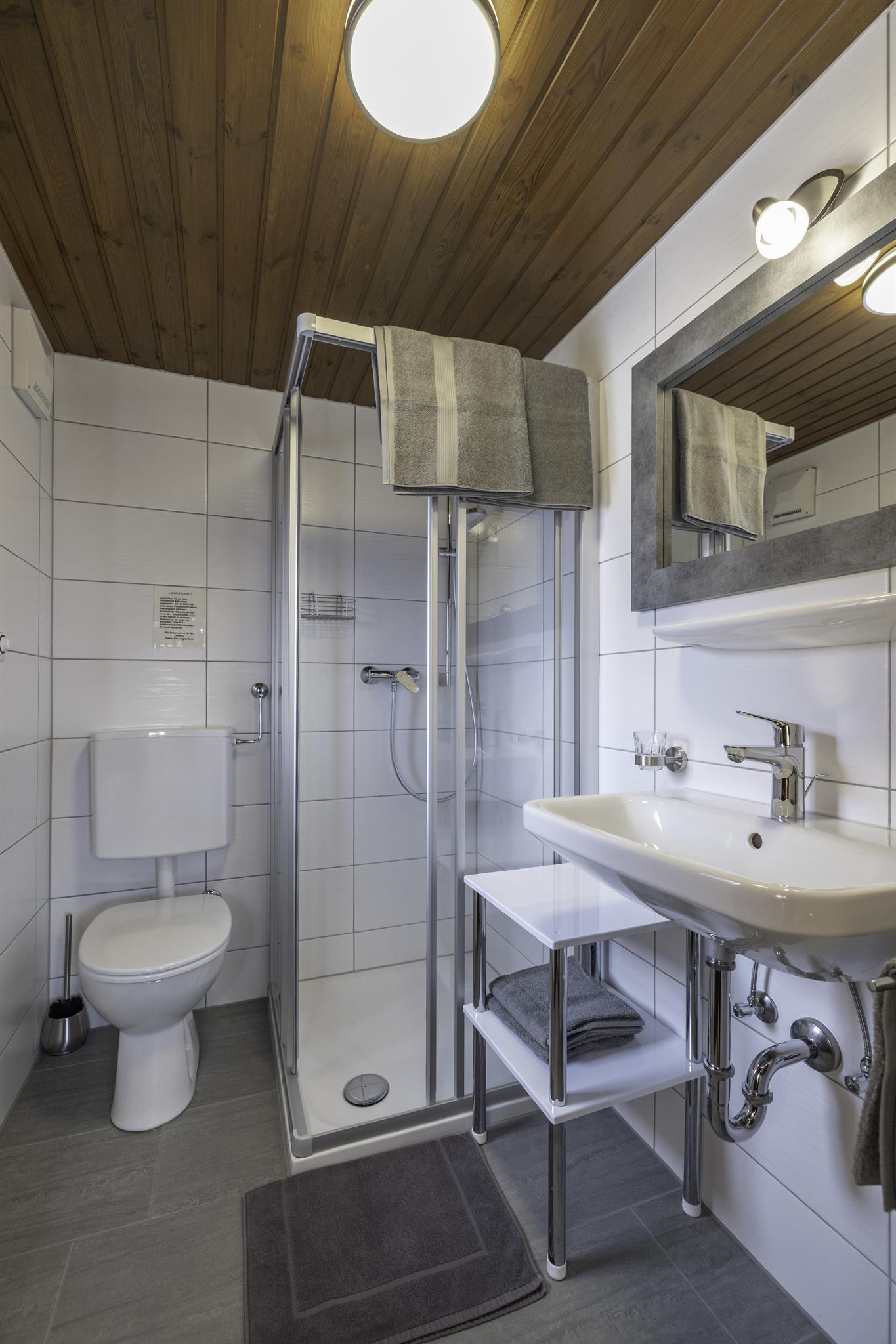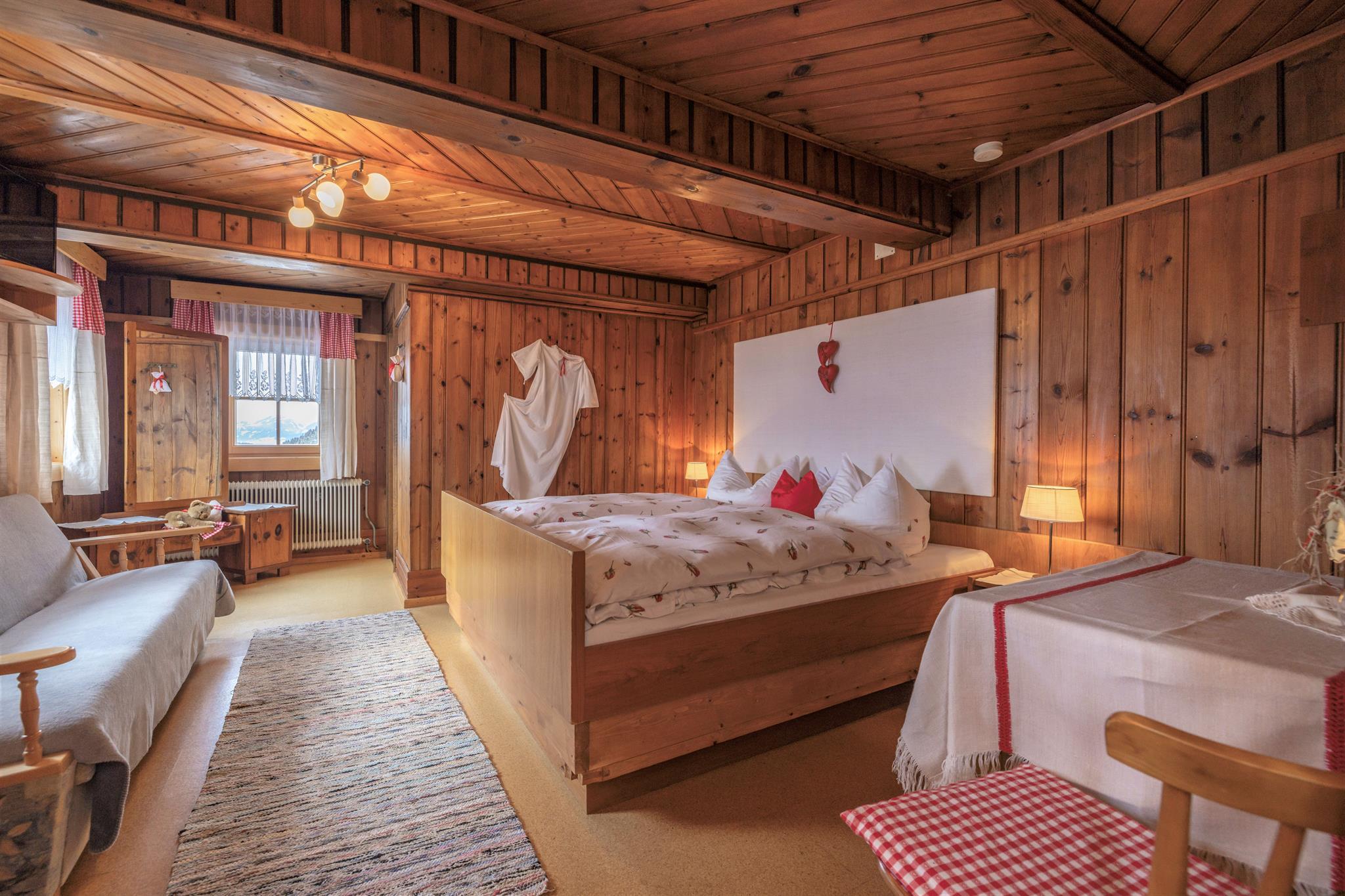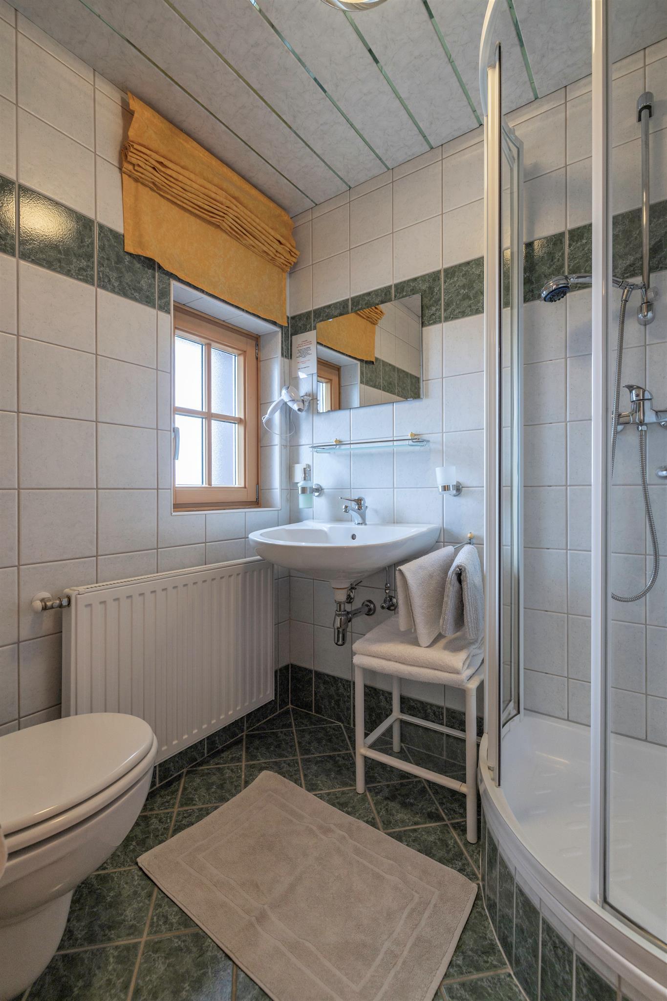 Wir bieten Ihnen behagliche, holzgetäfelte Mehrbettzimmer für 2 - 4 Personen (Doppelzimmer mit Zustellbetten) mit Dusche/WC, SAT-TV, kostenlosem W-Lan, Zentralheizung direkt am Hof an. Badezimmer wurde heuer neu saniert....
