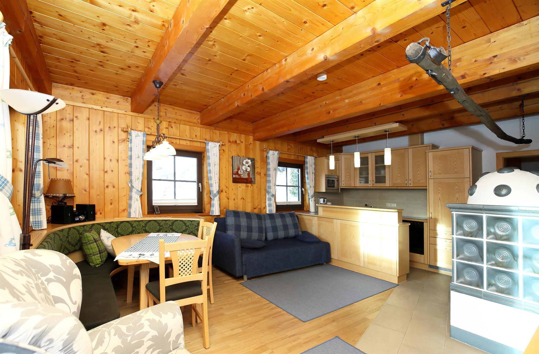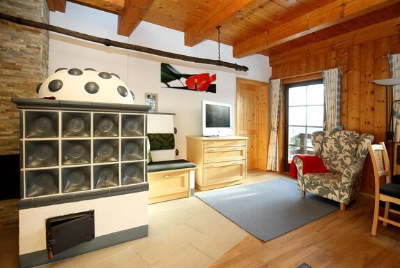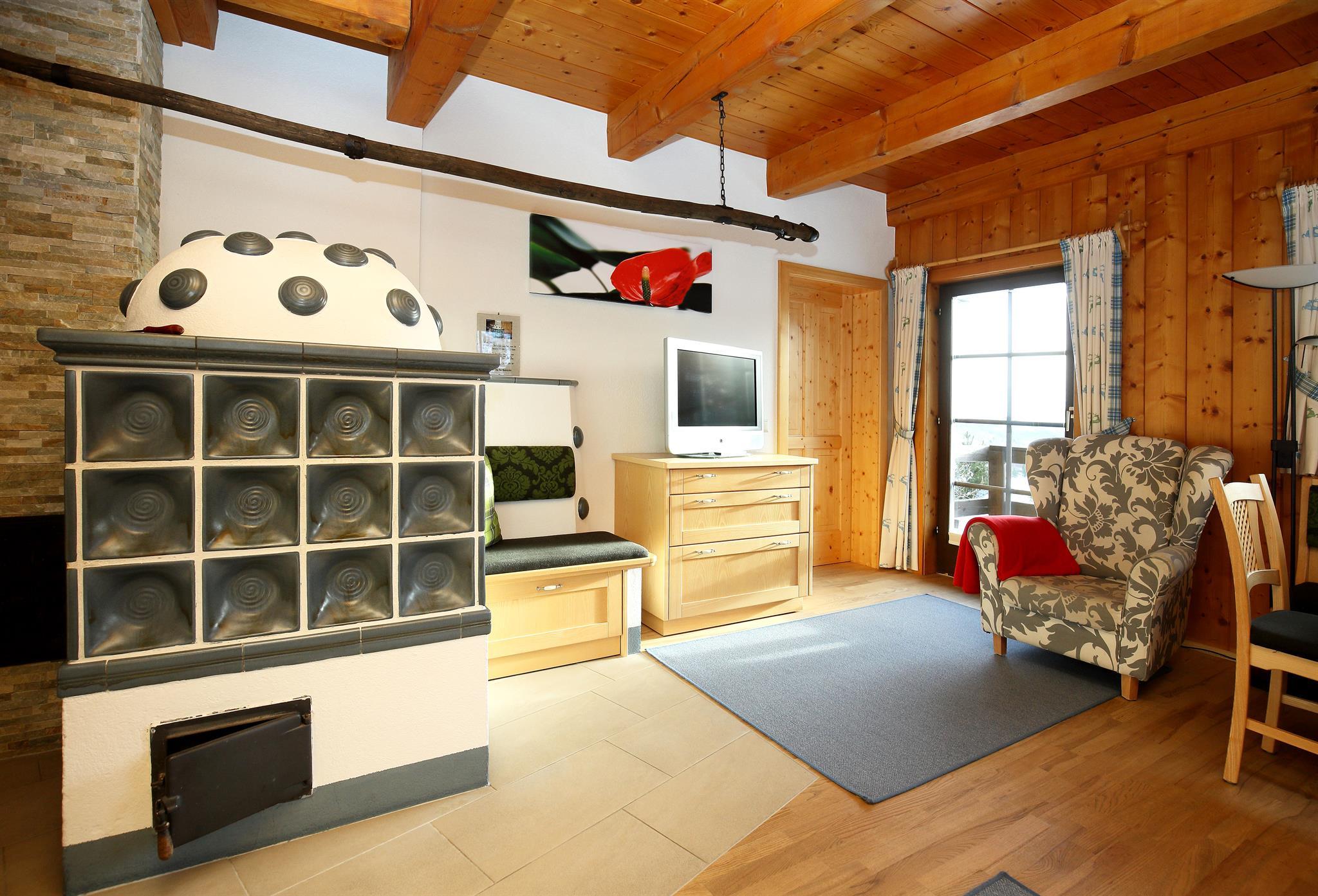 Die Ferienwohnung Typ XL hat 64 m² Wohnfläche, einen großen Wohnraum mit integrierter Küche durch eine Anrichte getrennt, Kachelofen, zwei Doppelzimmer, Bad, getrenntes WC, Vorraum, Ausgang vom Wohnzimmer direkt ins Freie. Schöne Lage mit Blick zur Piste und zum See. Unser ****App. Typ XL ist eine tierfreie Wohnung, deshalb für Allergiker bestens geeignet.
