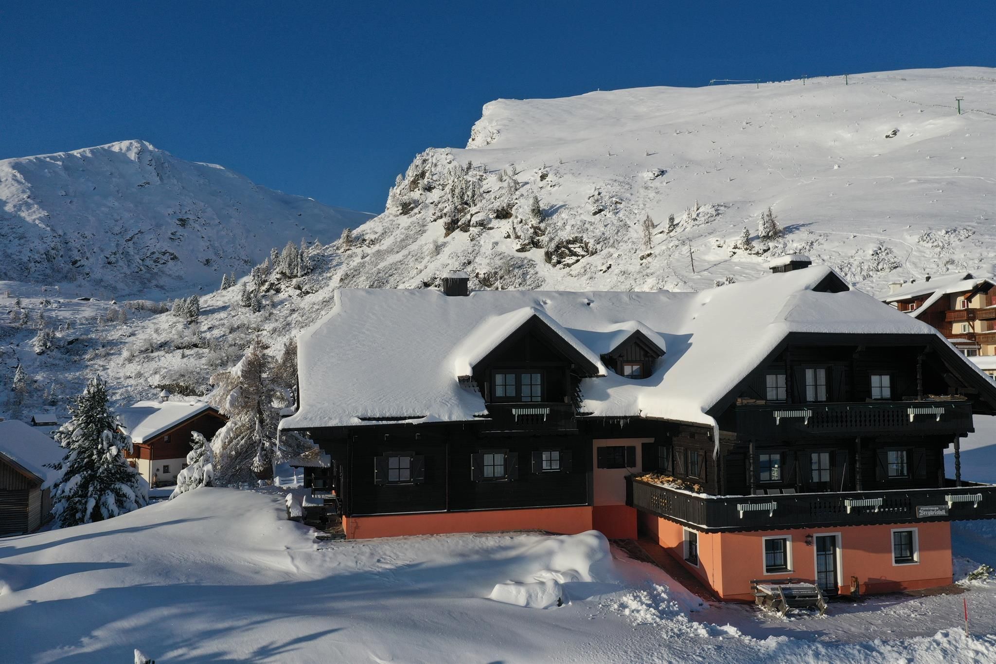 Im Winter direkt an der Piste, nur 100m BERGAB zum Skilift und zur Skischule.
