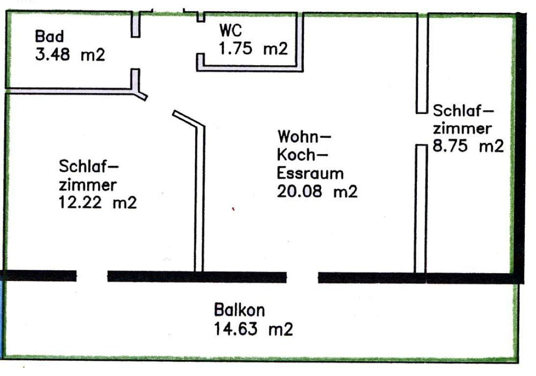 2-6-Personen, 46 m2, 1 Wohnschlafraum mit Kochnische, gemütliche Eßecke und ausziehbare Couch, 1 Schlafzimmer, 1 Bad mit WC