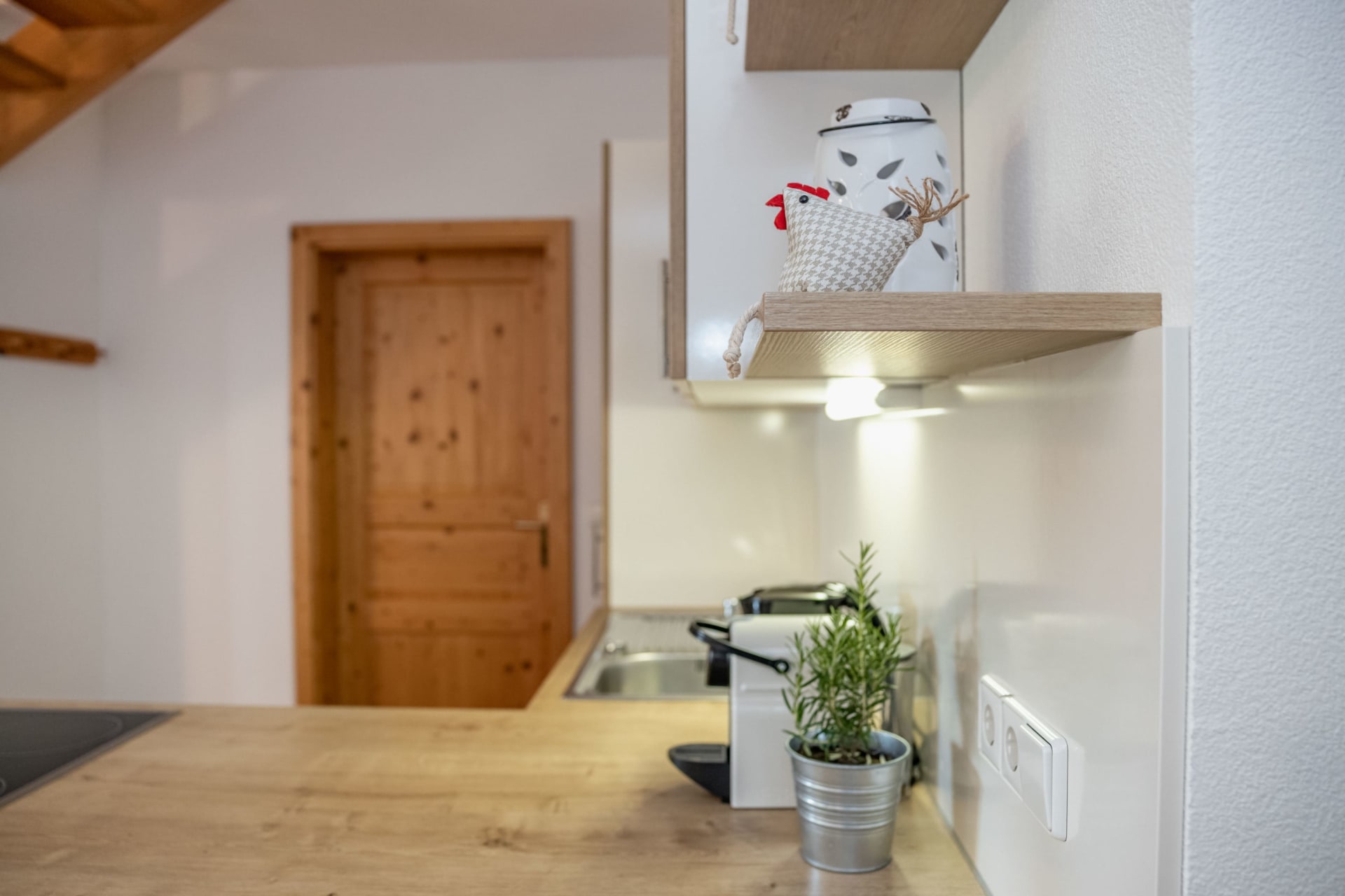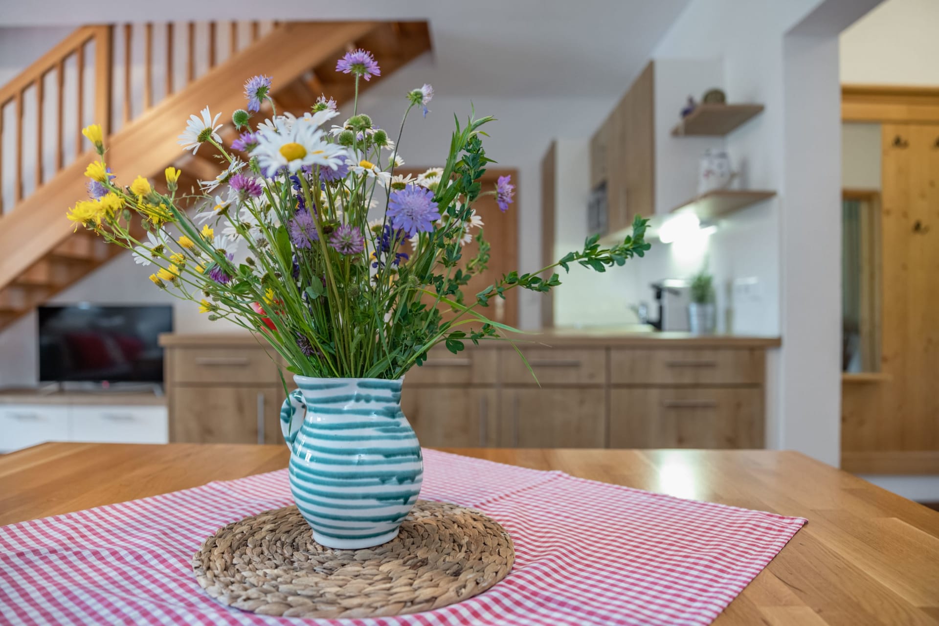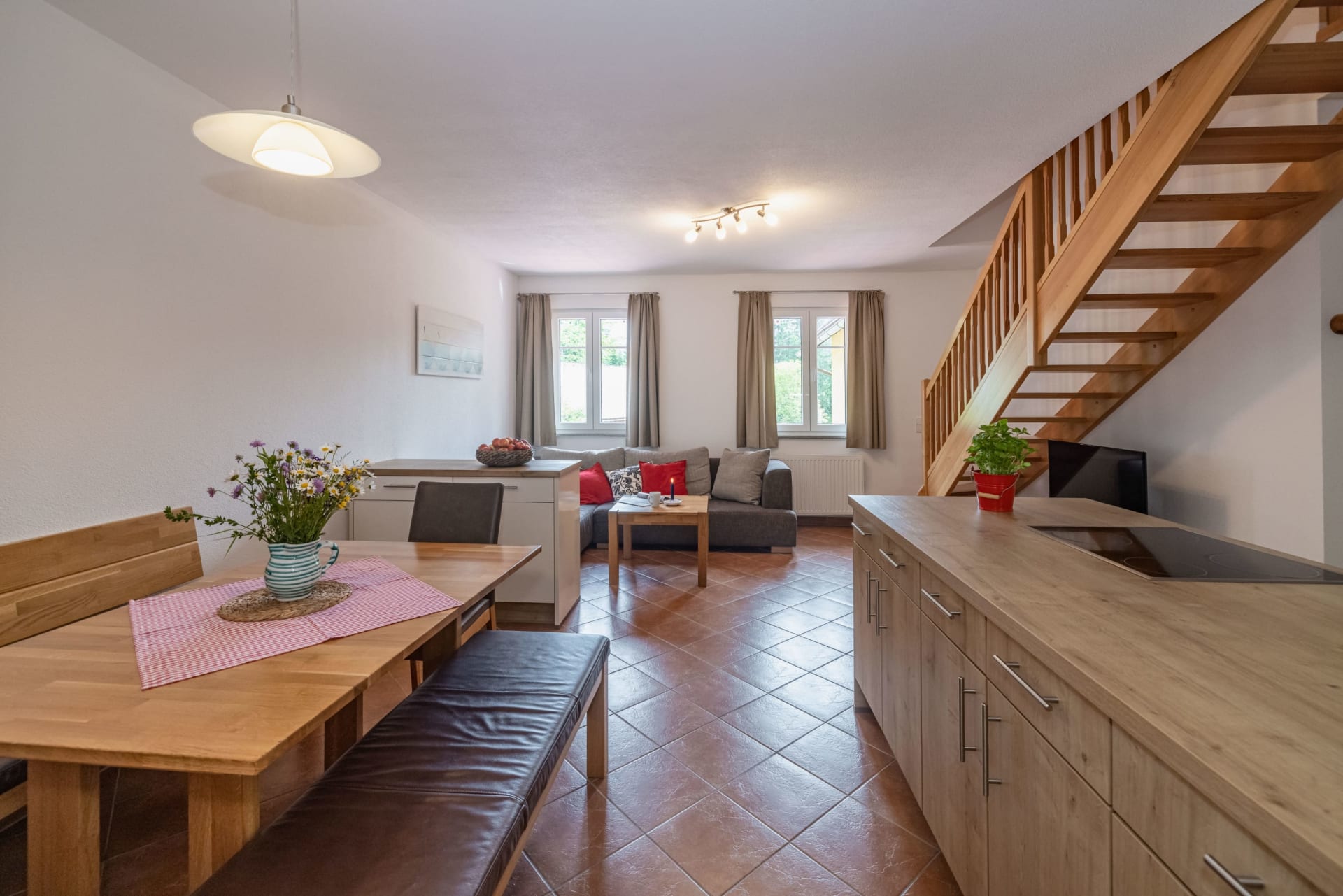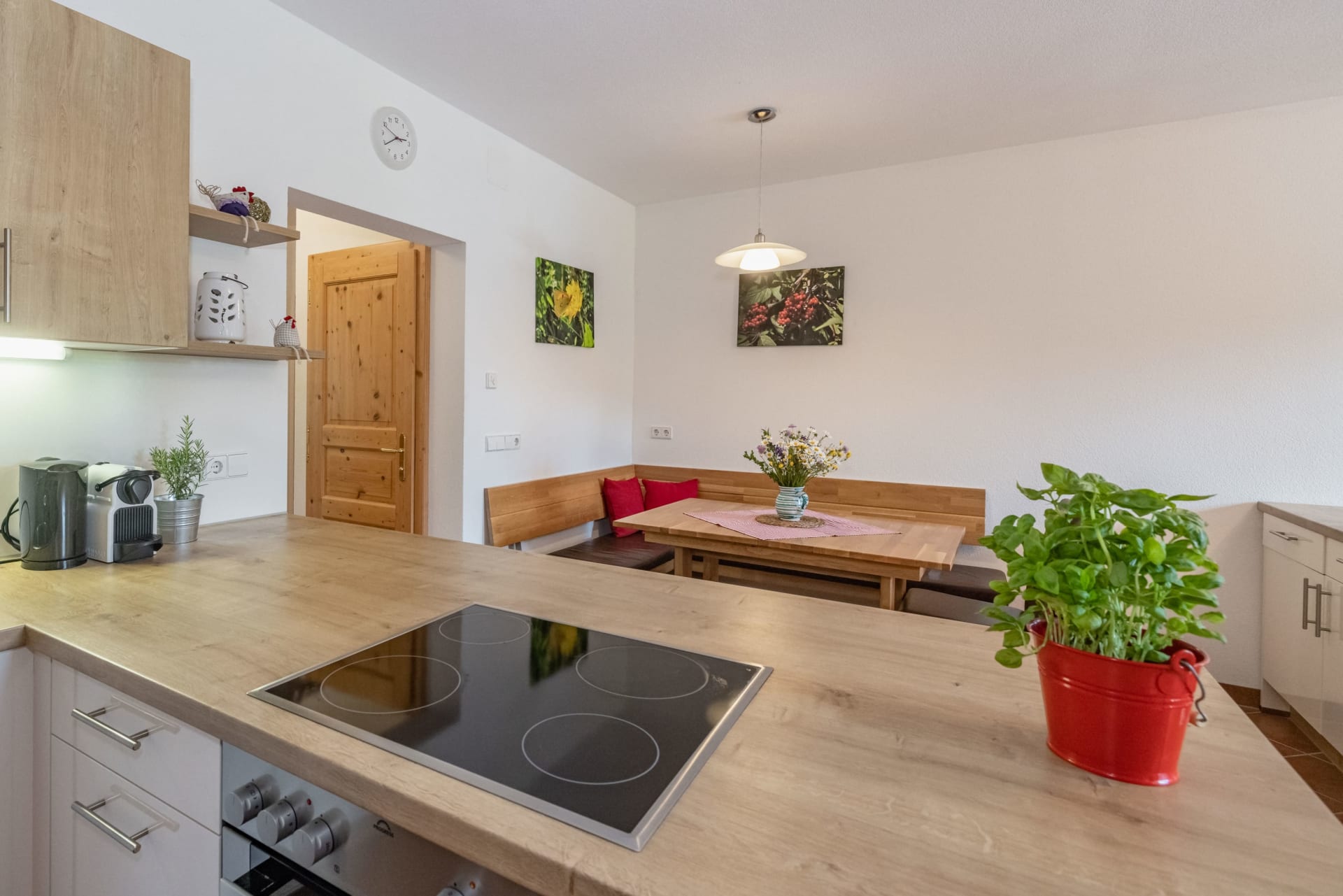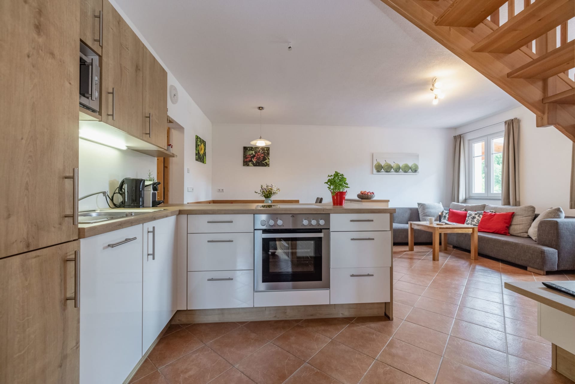 Großzügige Wohnung mit hochwertiger Einrichtung und traumhaftem Ausblick auf die Steiner Alpen. Top ausgestattete Küche mit gemütlichem Essbereich.