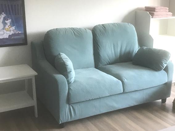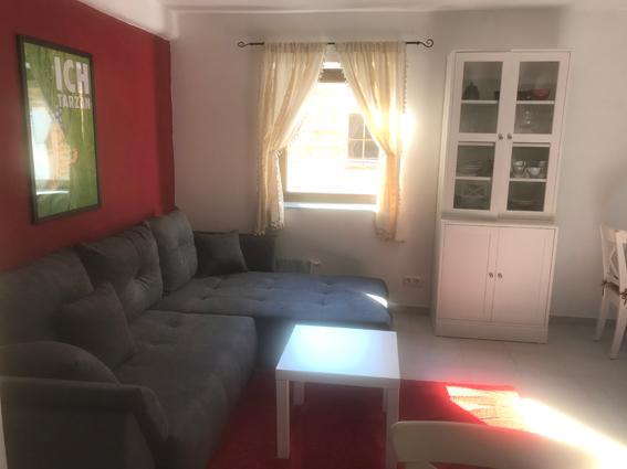 Wohnung hat 1 Schlafzimmer mit Doppelbett und 1 Einzelbett. Das Wohnzimmer ist mit einer super gemütlichen