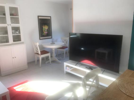 Sitzgarnitur, großen Flachbild-TV und Esstisch mit 3 Stühlen