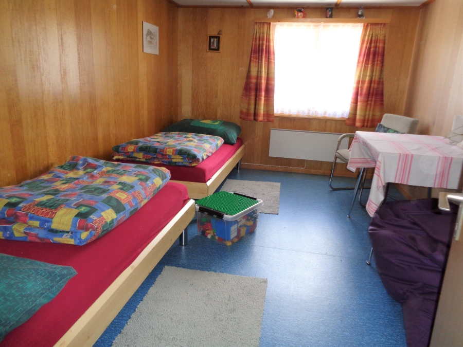 Gemütliche 4.5 Zimmer-Wohnung mit 7 Betten. Hochparterre: Wohnimmer mit TV, gut eingerichtete Küche, 1 Zimmer mit Einzelbett, Badezimmer mit Dusche und WC. 1.Stock: 2 Schlafzimmer mit Doppelbetten, 1 Zimmer mit 2 Einzelbetten, separates WC. Kinderbett vorhanden. Badwäsche bitte selber mitbringen.