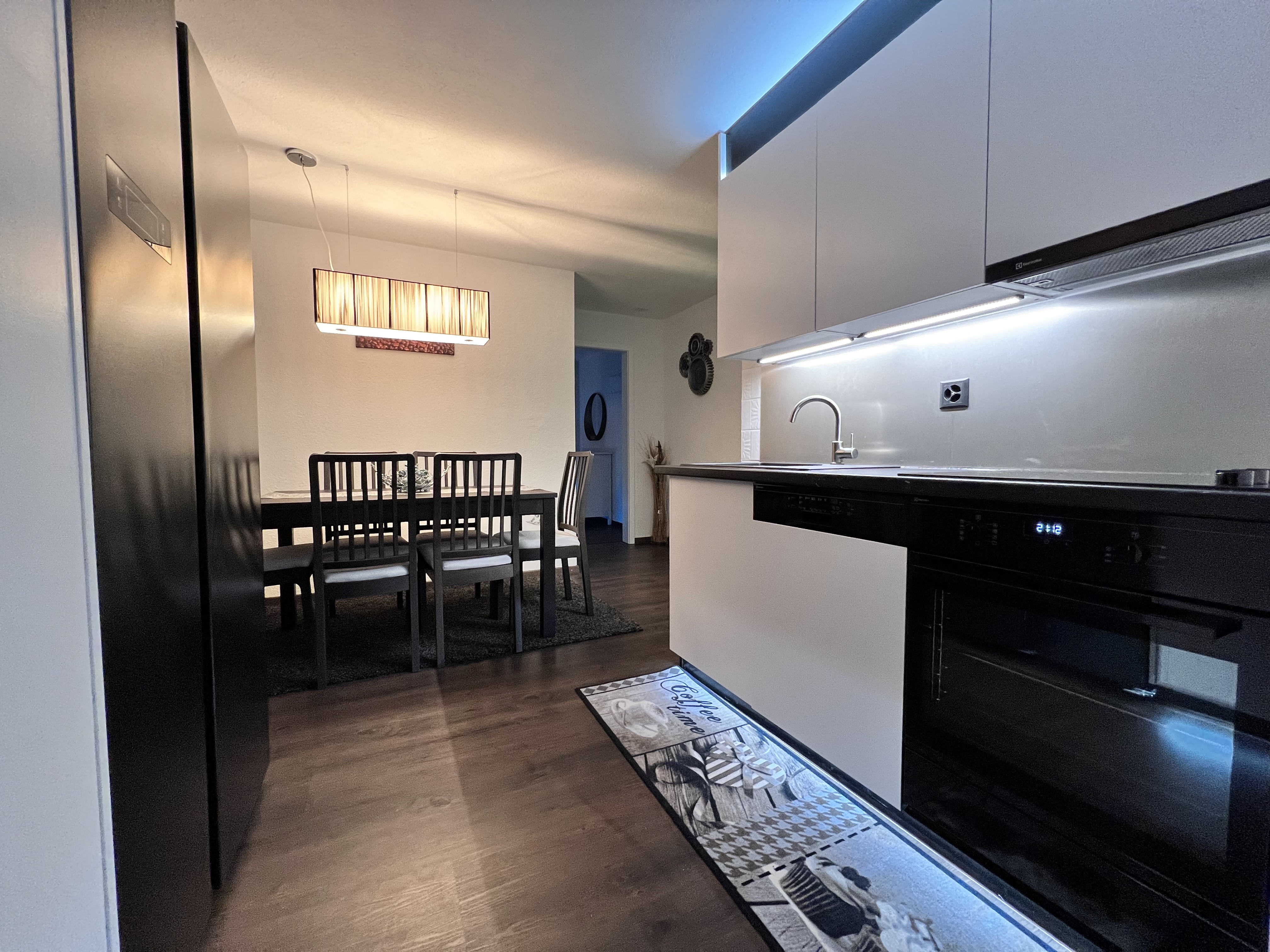 Die Wohnung verfügt über eine offene Küche mit Essbereich, ein Badezimmer mit WC, Badewanne und Tropendusche, 2 Schlafzimmer, ein grosses Wohnzimmer mit Cheminée und einen grosszügigen Balkon mit Aussicht. Schlafzimmer: Master Bedroom mit bequemem französischen Springbox Bett (180x200cm), Flat Screen Smart-TV und grossem Kleiderschrank, Bergsicht vom Bett aus. Kinderschlafzimmer mit Stockbetten (2x 90x200cm), indirekte Ambiente Beleuchtung dient als Nachtlicht, Kleiderkomode. Die Betten sind bei Ankunft bezogen, Reinigung der Bettwäsche siehe Preisliste.Badezimmer: Modern renoviertes Badezimmer mit Waschbecken/Badezimmerschrank/Spiegelschrank, WC, Badewanne, Tropendusche und Handtuchtrockner. Kosmetikspiegel, Haartrockner und Frotteewäsche stehen zur Verfügung, Reinigung Frotteewäsche siehe Preisliste.Wohnzimmer: Das grosse Wohnzimmer mit 2 Bettsofas bietet Platz zum schlafen für weitere 2 (-4) Personen. Ob beim Cheminée die Wärme und gemütliche Atmosphäre geniessen, einen Netflix-Film auf dem Flat Screen Smart-TV mit Ambiente Beleuchtung und Satelitenanschluss verfolgen oder einfach die spektakuläre Aussicht durch die grosszügige Fensterfront bestaunen - jeder kommt im Wohnzimmer auf seinen Geschmack. Holz für das Cheminée steht zur Verfügung, solange Vorrat.Küche: Die modern renovierte Küche lässt keinerlei Wünsche offen: Sämtliches Geschirr, Kochgeschirr, Käsefondue, Fondue Chinoise, Raclette Set etc. sind neuwertig. Der Glaskeramik Herd, Backofen, Mikrowellenherd mit Grillfunktion und Geschirrspüler sorgen für angenehmes Kochen. Im grossen Food Center können Sie genügend Vorräte für Ihren ganzen Aufenthalt kühlen oder tiefgefrieren. Eine Kaffeemaschine (Nespresso Aluminiumkapseln) sowie ein Wasserkocher stehen ebenfalls zur Verfügung. Der ausziehbare Esstisch in der gemütlichen Essecke bietet genügend Platz für alle Gäste. Küchenwäsche vorhanden und im Preis inbegriffen.Weitere Räume: Im Gang, welcher je nach Geschmack und Laune beleuchtet werden kann befindet sich eine weitere Kommode mit Stauraum für Schuhe und Gepäck. Hier finden Sie auch Bücher und Spiele, die zur Verfügung stehen. Auf dem Balkon mit grossartiger Aussicht kann am Tisch gemütlich gegessen oder in der Lounge mit Infrarot-Heizkörper entspannt i, Snowboards und Skischuhe können und sollen im Skiraum im Erdgeschoss gelagert werden. Ein elektrischer Skischuh-Heizkörper sorgt dafür, dass am Morgen Ihre Skischuhe trocken und warm sind.Im Erdgeschoss befindet sich eine Waschküche mit Waschmaschine und Tumbler (Münzautomat) sowie Wäscheständer - hier können Sie bei Bedarf bequem Ihre Kleider waschen.Einrichtung: Während der kompletten Renovation im Herbst 2021 wurde die Wohnung stilvoll-modern und dennoch gemütlich und praktisch eingerichtet. Dunkles Parkett/Laminat in der ganzen Wohnung, ansprechendes Farbkonzept und Ambiente Beleuchtung sorgen für ein Gefühl von Luxus und Gemütlichkeit. WLAN ist in der ganzen Wohnung kostenlos verfügbar. 2 Flat Screen Smart-TV’s, Netflix, Amazon-Prime und Spotify können gratis verwendet werden. Jeder Gast erhält zu seiner Buchung eine Gästekarte Disentis Sedrun Inclusive”, welche während Ihres Aufenthaltes zu Inklusivleistungen und grosszügigen Vergünstigungen berechtigt.Kurtaxe/Person/Nacht 4 CHF ab 12 Jahre
