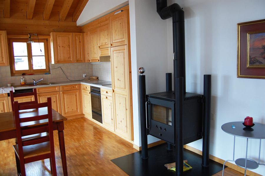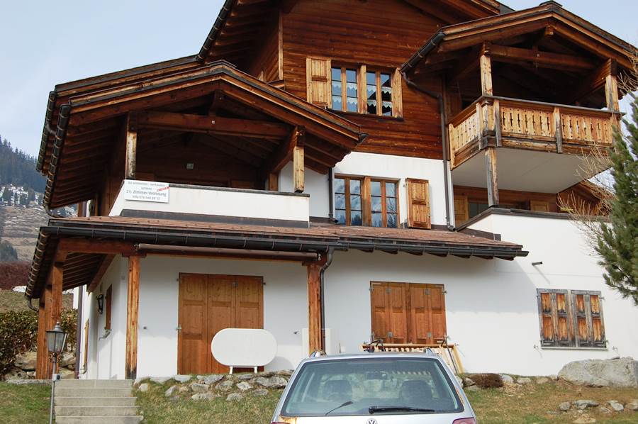 4.5 Zimmer-Wohung im Hochparterre. Schöner Wohnbereich mit TV, DVD-Player und Cheminée, grosse Wohnküche mit Geschirrspüler, Kaffeemaschine, Fondue- und Racletteset. 3 Schlafzimmer: 1 Zimmer mit Doppelbett und 2 Zimmer mit Einzelbetten. 2 schöne Terrassen. Badzimmer mit Badwanne und WC. Bodenbelag: Teppich, Parkett, Platten