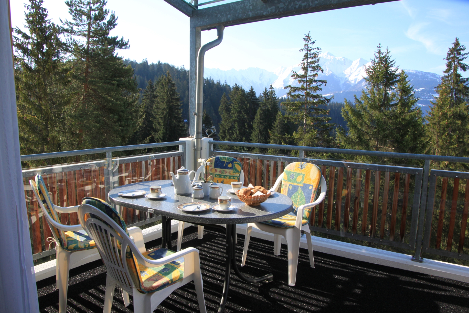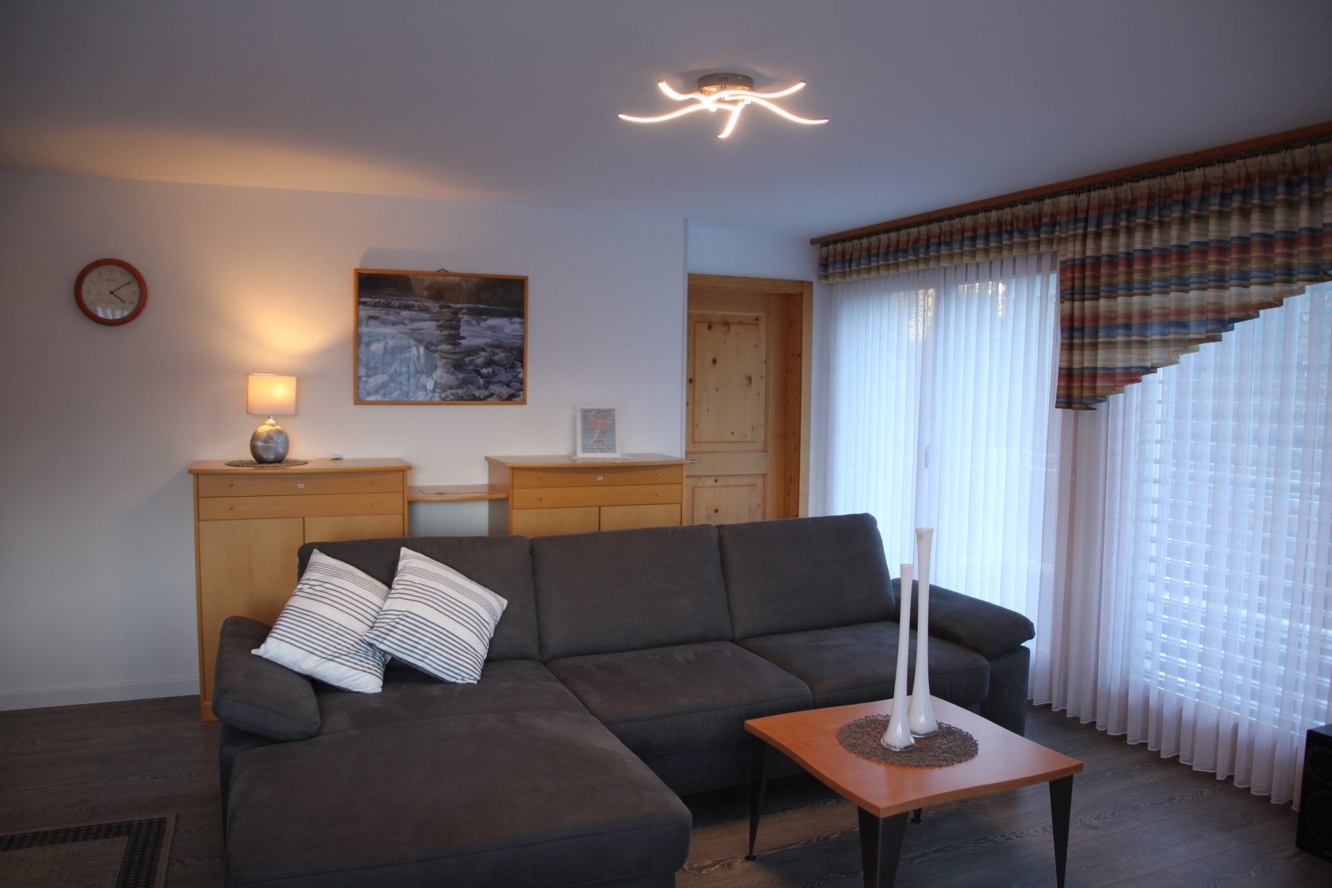 3.5 Zimmerwohnung (4 Betten), 68qm, Kategorie 4**** (liebevoll renoviert) in einem Mehrfamilienhaus. Wunderschön, sonnig und ruhig gelegen. Das Haus liegt in Laax Murschetg mit direktem Blick auf die traumhafte Bergwelt und in unmittelbarer Nähe der Gondelbahnen. Die wenigen Meter zur Talstation erreicht man in ca. 3 Gehminuten. Von hier aus hat man Zugang zum gesamten Flims/Laax/Falera-Skigebiet. Für Wanderfreunde beginnen lange und kurze Wandertouren direkt vor der Haustüre und führen in die traumhafte Bergwelt und an idyllischen Seenlandschaften vorbei. In der Tiefgarage befinden sich zwei, für unsere Gäste reservierte, Parkplätze. Mit dem Lift kommen Sie direkt zur Wohnung. Im Keller ist ein beheizter Skiraum, in dem die Skiausrüstung sowie die Ski-oder Wanderschuhe getrocknet werden können. Waschmaschine und Wäschetrockner (Tumbler) sind auf Wunsch zugänglich. Zur Ferienwohnung gehören zwei Balkone, die von morgens bis abends Sonne und Erholung bieten. Die 68 qm teilen sich auf in eine offene Küche, Ess-und Wohnbereich sowie zwei Schlafzimmer mit Doppelbetten und zwei Bäder. Die Bäder sind jeweils mit Waschbecken, Toilette und Dusche bzw. Badewanne ausgestattet. Fön und Personenwaage sind vorhanden. Die gesamte Wohnung verfügt über Fussbodenheizung. Die hochwertig ausgestattete Küche bietet Elektrogeräte wie z.B. Herd mit Ceranfeld und Backofen, Kühlschrank, geräumiges, separates Gefrierfach, Geschirrspüler, Mikrowelle mit Grill, Kaffeemaschine, Wasserkocher, Toaster, Mixer und Eierkocher. Für einen gemütlichen Abend stehen ein elektrisches Fonduegerät und ein Raclette zur Verfügung. Der Wohn- und Essbereich ist hell und freundlich eingerichtet und verfügt über ein großes Flatscreen-TV-Gerät mit Kabelfernsehen, Blu-Ray-Player, Stereoanlage, Telefon und WiFi. Bei der Anreise sind die Betten bereits bezogen.Nichtraucherwohnung, Haustiere sind nicht erlaubt.