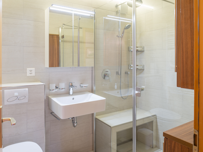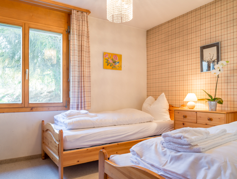 Es gibt ein Schlafzimmer mit Doppelbett, ein Schlafzimmer mit zwei Einzelbetten und ein drittes Schlafzimmer mit Stockbett. Zusätzlich zum Bad ist ein separates WC vorhanden. Ein Tiefgaragenplatz ist im Wohnungspreis inbegriffen. Eine Gemeinschaftswaschmaschine mit CHF 0.50 Münzautomat ist in der Wohnanlage vorhanden. Bitte beachten Sie das zu diesem Apartment nur 1 Parkplatz zur Verfügung steht. Alle weiteren Autos müssen auf den öffentlichen Parkplätzen oder in den öffentlichen Parkhäusern abgestellt werden.