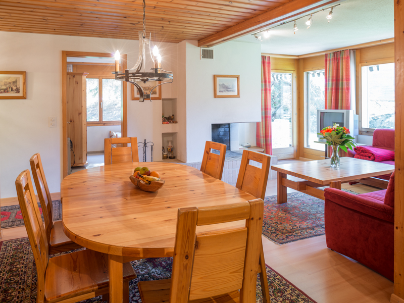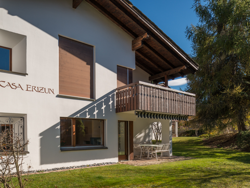 Ferienwohnung Erizun E3 befindet sich im Erdgeschoss eines Mehrfamilienhauses, verfügt über eigene Terrasse mit viel Grün und schöner Bergsicht. Nur 2 Gehminuten von der Skibushaltestelle Surpunt. Erizun E3 besitzt ein grosses Wohnzimmer mit Cheminée, geräumigem Essplatz, Radio und TV (kein Internet). Die Küche ist gut ausgestattet, u. a. mit grossem Kühlschrank mit Tiefkühlfach, Geschirrspüler, Elektroherd, Backofen, Mikrowelle, Nespresso Kaffeemaschine, Raclette Set.