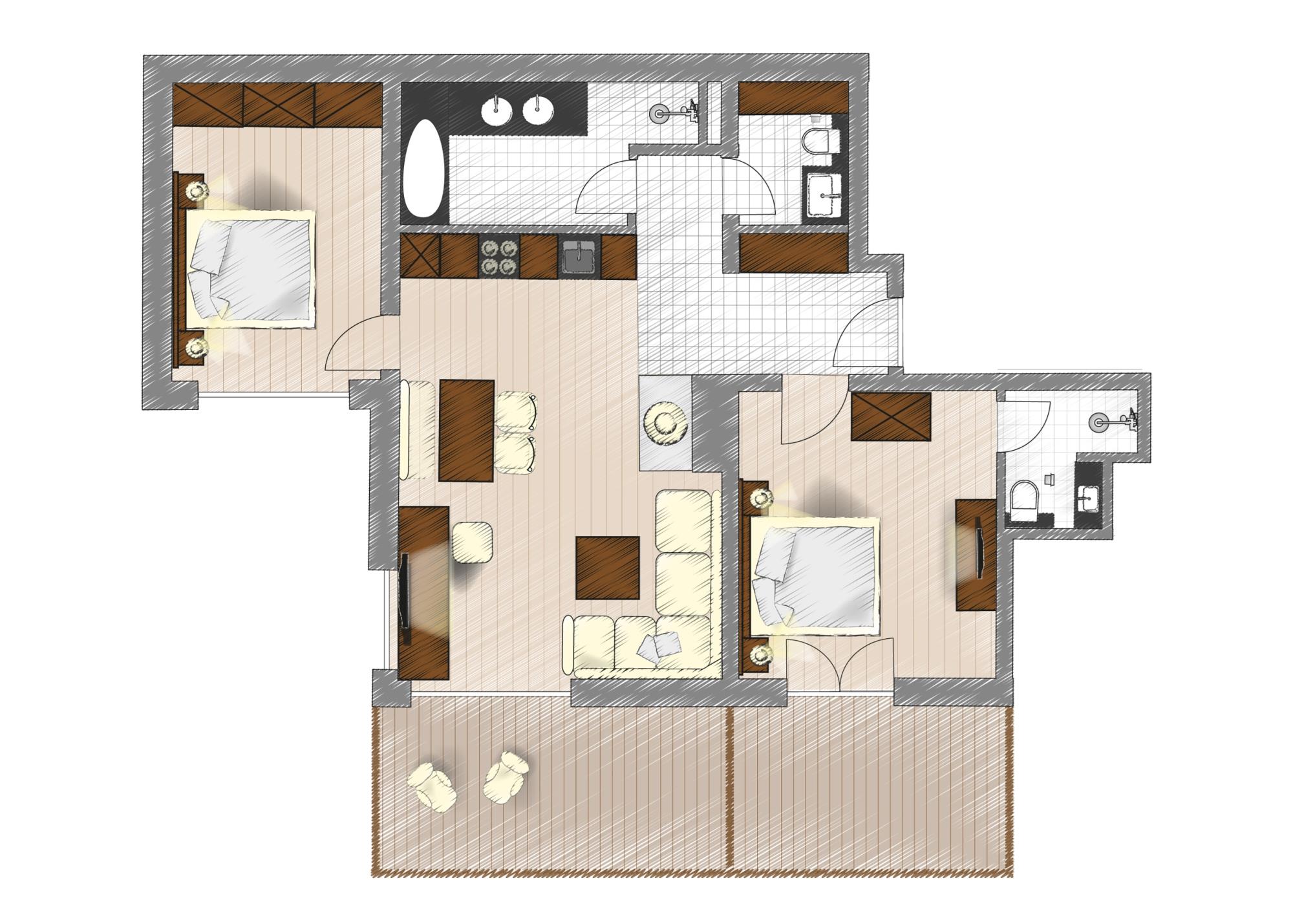 Bewusst möchten wir diese Wohnung als geräumiges 2- oder 4-Personen-Appartement vermieten.
