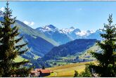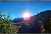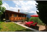 Einzigartige Panoramasicht auf die Berge. Balkon/Terrasse rund ums Haus, seitlich und über die ganze Hausfront, teils gedeckt mit gemütlichen Sitzplätzen. Am Haus angrenzend, Garten zur Mitbenutzung.