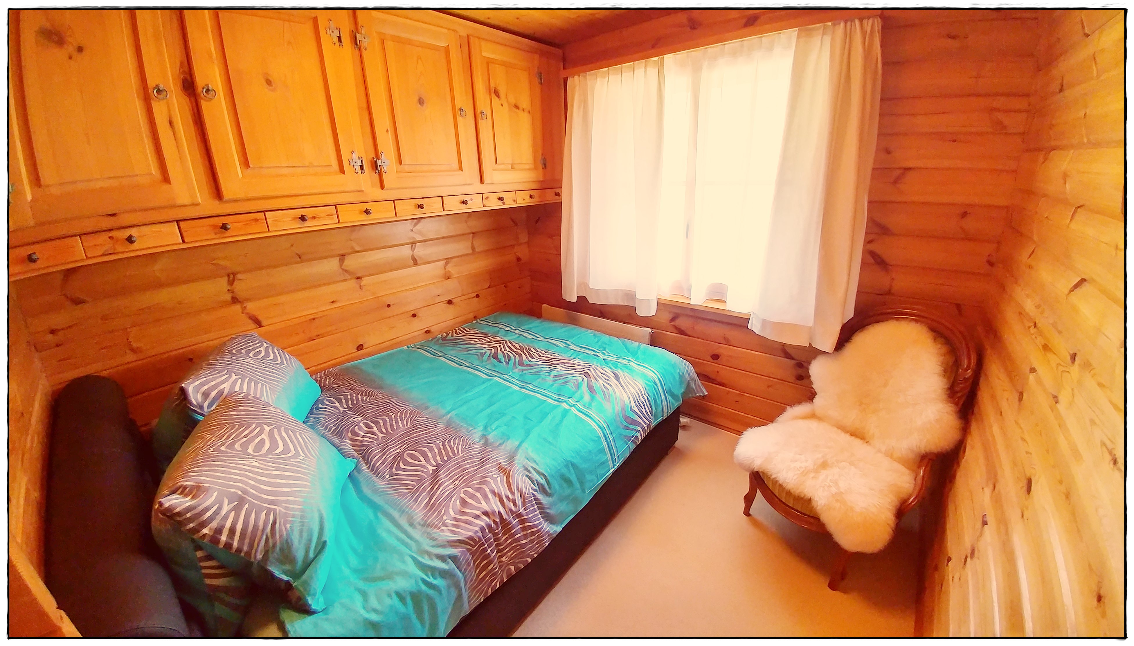 Wohn-/Schlafraum mit ausziehbarem Doppelbett; integrierte Kochgelegenheit mit 2 Kochplatten; Küchenutensilien; Badzimmer: Dusche/WC. Satelliten-TV; Wi-Fi (WLAN).
