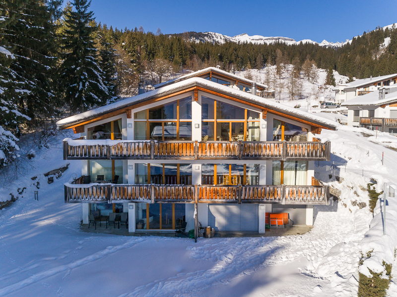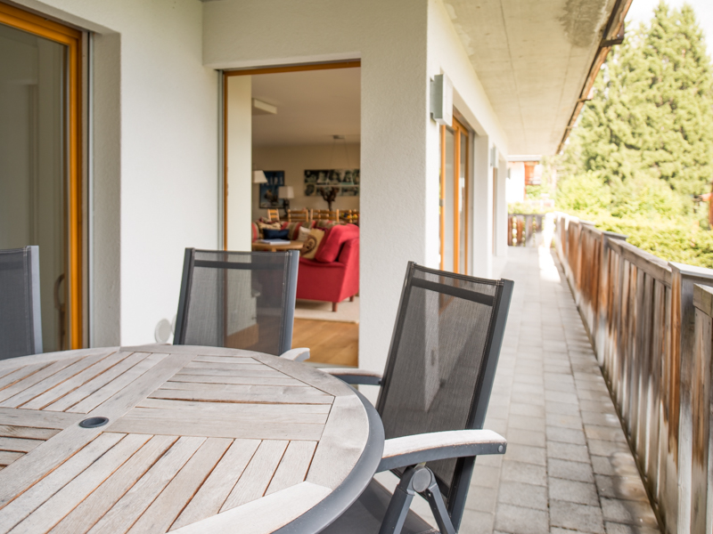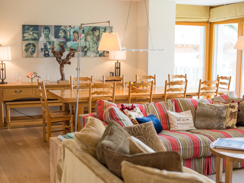 Die luxuriöse Chalet- 6,5 Zimmerwohnung, 160m2, (Maximalbelegung 8 Personen) ist stilvoll eingerichtet und hat ein grosses Wohnzimmer. Die Fenster bieten einen wunderbaren Blick ins Alpenpanorama und eine zentrale Feuerstelle trägt zur Gemütlichkeit bei. Im Haus befinden sich: Flachbild-TV's mit DVD Player, viele Bücher, DVD's und Brettspiele, Waschmaschine und Wäschetrockner zur kostenlosen Mitbenutzung, komplett eingerichtete Küche mit Backofen/Mikrowelle und ein grosser Balkon über die gesamte Breite der Wohnung.