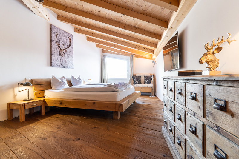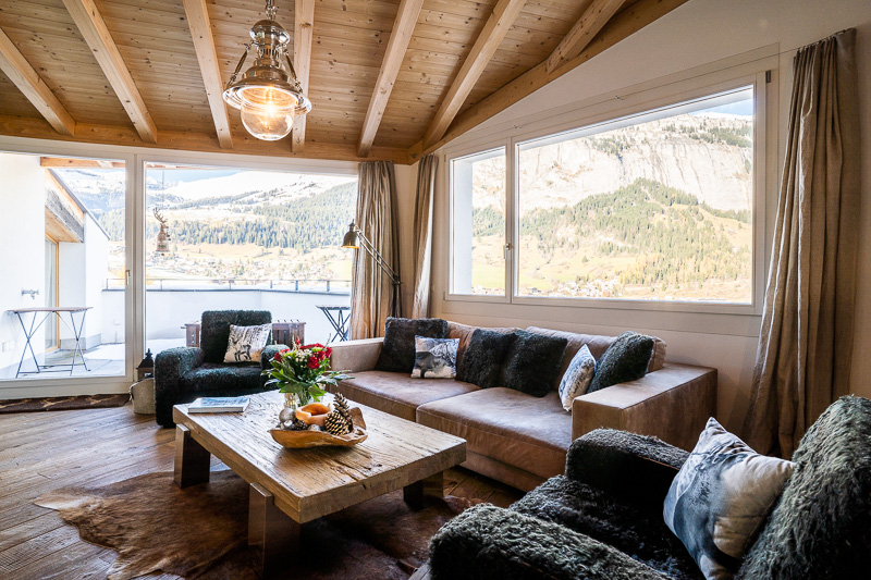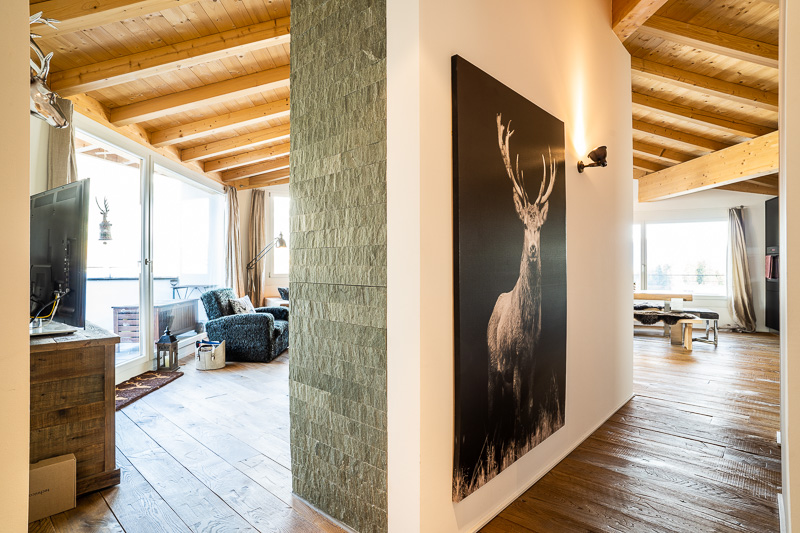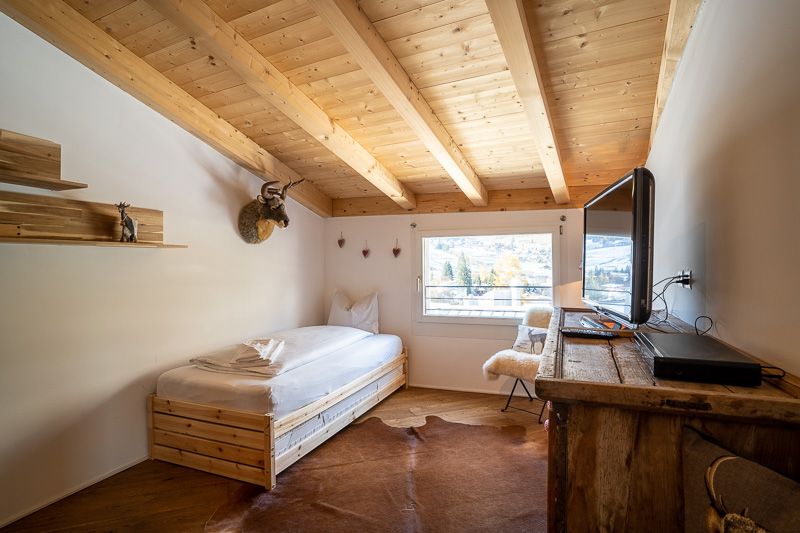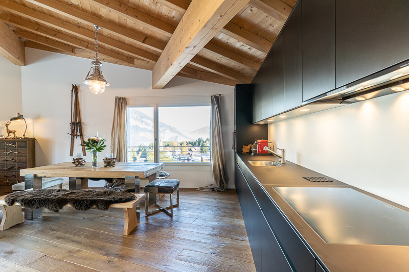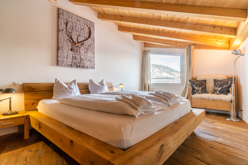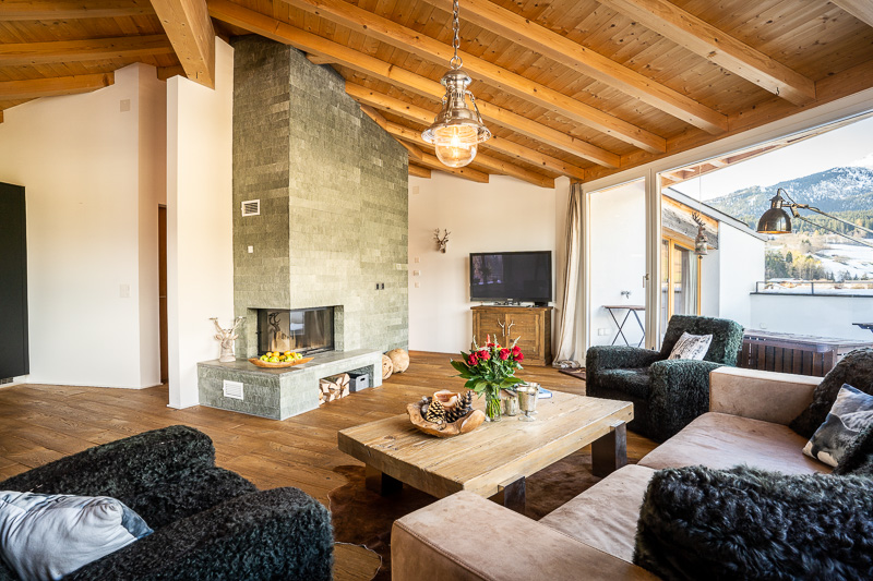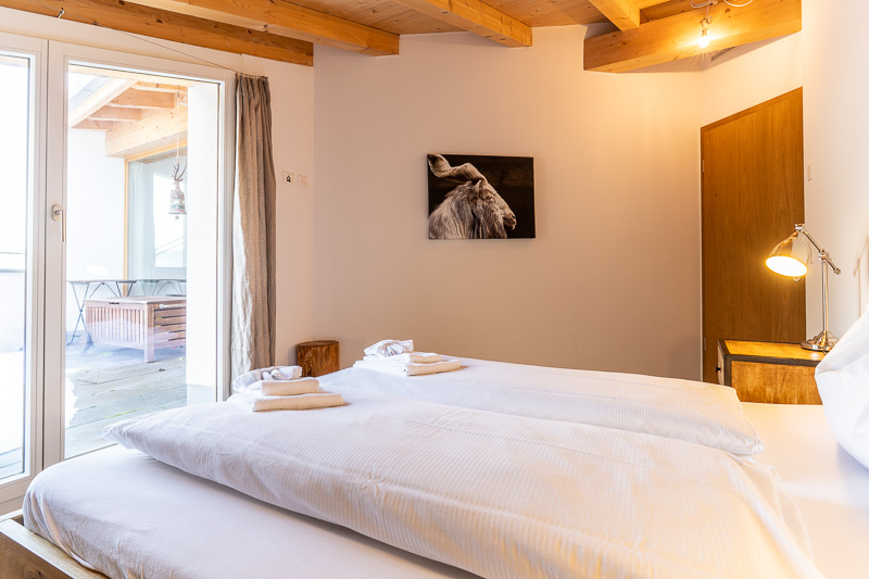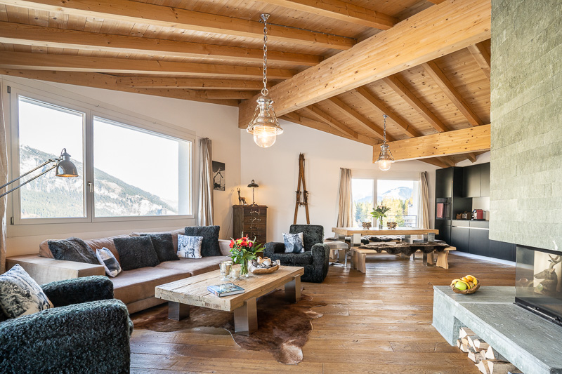 Herzlich Willkommen im Promenada Penthouse! Die luxuriöse 4.5 Zimmer Dachgeschosswohnung befindet sich in einem moderenen Mehrfamilienhaus in Flims Waldhaus mit einem fantastischen Ausblick auf die umliegende Bergwelt. Das Apartment verfügt über 3 Schlafzimmer. Zwei sind jeweils mit einem Doppelbett ausgestattet. Das dritte (Kinder-)Zimmer verfügt über ein Einzelbett mit Ausziehmöglichkeit und einem Hochbett, welches über eine Leiter erreichbar ist. Dessen Nutzung ist nur für ältere Kinder empfohlen. Somit ist eine Maximalbelegung von 6 Erwachsenen definiert, sind Kinder dabei, so finden auch 8 Gäste gut Platz. Eines der hochwertigen Bäder ist mit Dusche und WC ausgestattet und das grosse Badezimmer hat zusätzlich eine Badewanne. Eine kleine Bio-Sauna, max. 2 Gäste, stehen Ihnen im Apartment zur Verfügung. Als absolutes Highlight empfängt Sie der grosszügige Wohnraum mit angeschlossener Dining Area und der offenen Küche. Geniessen Sie nach einem ausgiebigen Skitag gemütliche Stunden am Kamin und das herrliche Bergpanorama. An einem sonnigen Tag geniesst sich der Ausblick am besten von der wohnungseigenen Dachterrasse. WLAN Nutzung, Nebenkosten und ein Garagenparkplatz sind inbegriffen. Bett- und Frotteewäsche, Endreinigung sowie alle Taxen und MwSt. sind ebenfalls im Endpreis enthalten. Rauchen ist nicht gestattet. Haustiere sind auf Anfrage erlaubt.