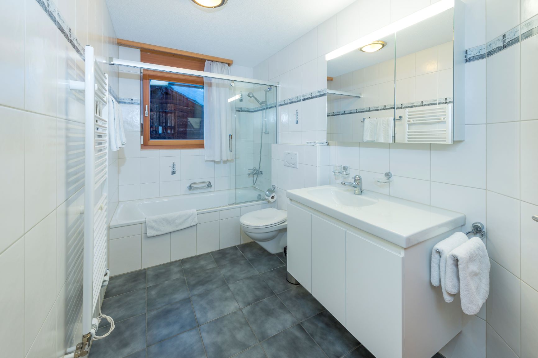 Neue moderne Wohnungen. Kellerraum & Abteil im Skiraum. Waschmaschine & Tumbler mit Münzautomat zur Mitbenutzung. Nichtraucher-Wohnung (Rauchen auf dem Balkon gestattet).