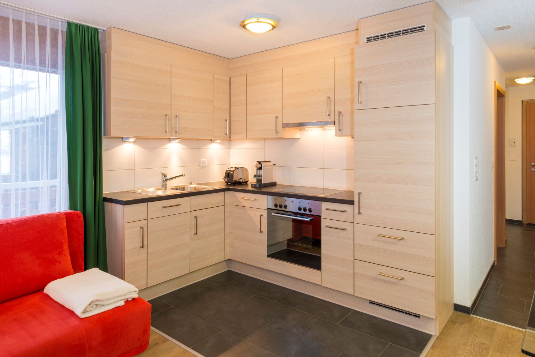 1 Schlafraum, Babybett: auf Wunsch, Babyhochstuhl: auf Wunsch, Backofen, Balkon, Barrierefreie Zimmer, DVD-Player, Fondue-Set, Geschirrspüler, Haustiere nicht erlaubt, Internetverbindung, Kaffeemaschine, Küche, Küchenwäsche, Kühlschrank, Lift, Nichtraucherzimmer-/wohnung, Raclette-Set, Radio, Schlafcouch, Terrasse, Tisch- und Küchenwäsche, Töpfe Pfannen Geschirr, TV, Wäschetrockner im Haus, Waschmaschine im Haus, Wasserkocher, WiFi