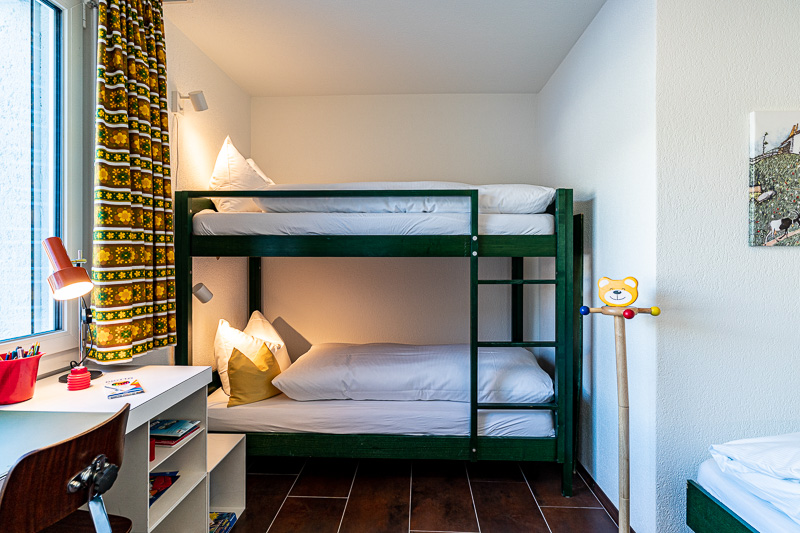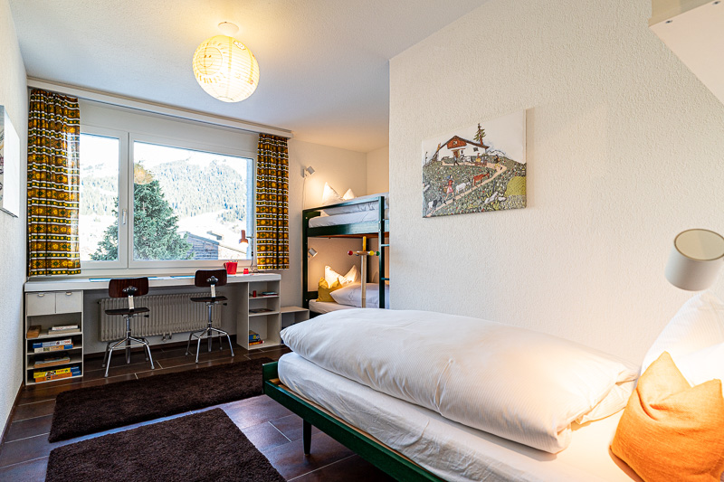 Die Casa Surmir Ferienwohnung bietet Platz für insgesamt 4 Erwachsene und 3 Kinder. Es befinden sich insgesamt 3 Schlafzimmer im Apartment, zwei Zimmer jeweils mit Doppelbett und ein Kinderzimmer mit einem Stock- und einem Einzelbett. Neben der offenen Küche und dem gemütlichem Wohnzimmer finden Sie ausserdem ein Familienbadezimmer mit einer Dusche, einer Badewanne und zwei Lavabos. Ausserdem steht Ihnen zusätzlich ein Gäste-WC zur Verfügung. Die Wohnung eignet sich nicht für mehr als 4 Erwachsene.