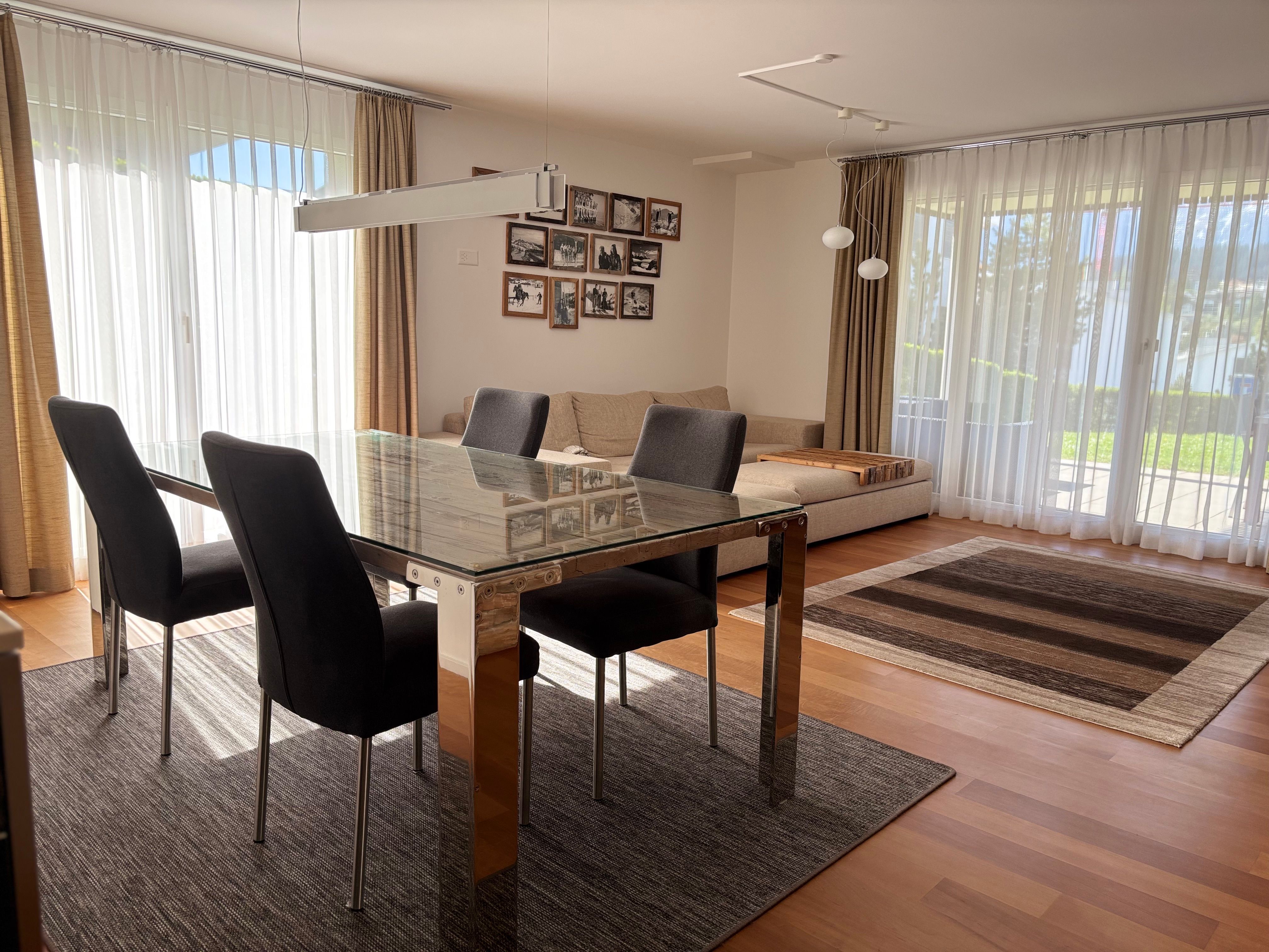 Die 3.5 Zimmer Wohnung Casa Aleca befindet sich in Flims Dorf und liegt in einem ruhigen aber sehr gut angebundenen Wohnquartier in einem Mehrfamilienhaus in unmittelbarer Nähe zu Restaurants und Einkaufsmöglichkeiten. Eine Bushaltestellt, mit Anschluss zu den Flimser Bergbahnen oder nach Bargis ist nur 1 Minute entfernt. Die Küche ist ausgestattet mit Keramikherd, Backofen, Geschirrspüler, Mirkowelle und Nespresso Kaffeemaschine. Das Apartment verfügt über 1 Schlafzimmer mit Doppelbett und einem Schlafzimmer mit einem Stockbett, zudem ein Badezimmer mit Dusch-Badewanne, WC und Lavabo. Es steht Ihnen ausserdem eine Waschmaschine in der Wohnung zur Verfügung. 1 Tiefgaragen sowie ein Aussenparkplatz, WLAN und Nebenkosten (Heizung, Strom, Wasser) sind inbegriffen. Bett- und Frotteewäsche, die Endreinigung sowie alle Taxen und MwSt. sind ebenfalls im Endpreis erhalten. Das Rauchen ist nicht gestattet und Haustiere sind nicht erlaubt.
