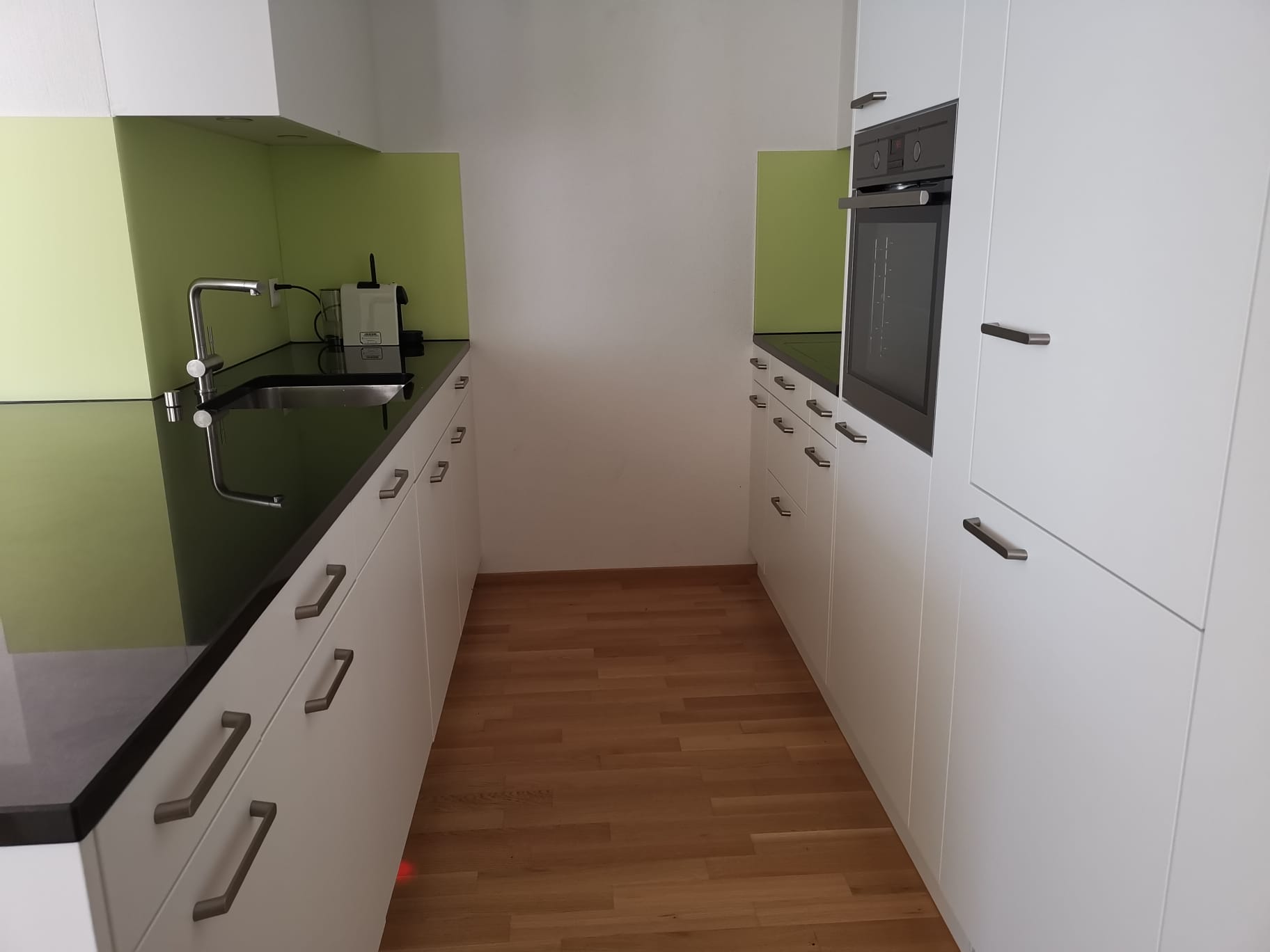 Die Küche ist komplett ausgestattet und verfügt über einen Glas-Keramik-Kochherd mit Dunstabzug, Backofen mit Steamer, einen grossen Kühlschrank mit Gefrierfach, Geschirrspülmaschine, Nespresso-Kaffeemaschine, Fondue-Set, Raclette-Grill, Wasserkocher mit Temperatureinstellung, Toaster, Soda-Stream Wassersprudler und allem benötigten Geschirr.