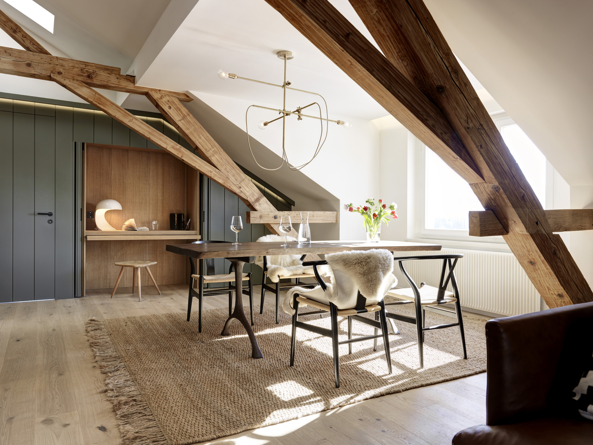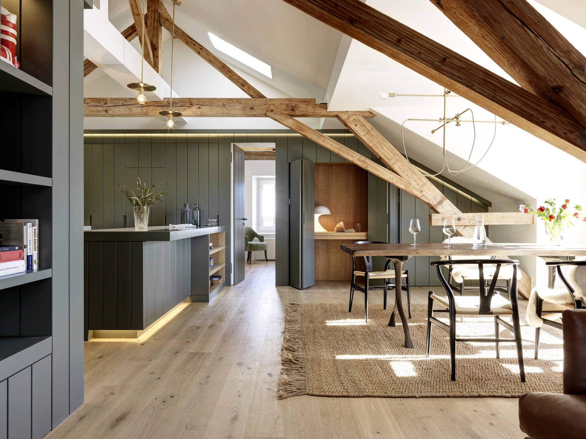 Die luxuriöse 4.5 Zimmer Dachgeschosswohnung befindet sich in einem historischen Mehrfamilienhaus im Zentrum von Flims Dorf mit einem fantastischen Ausblick auf die Flimser Bergwelt.