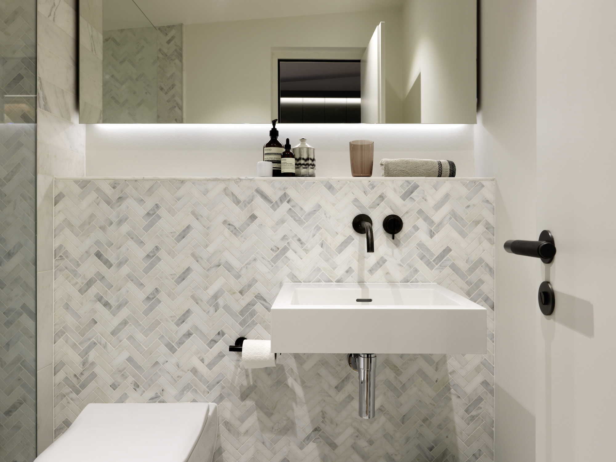 Eines der hochwertigen Bäder ist mit Dusche und WC ausgestattet und das grosse Familienbadezimmer hat zusätzlich eine Badewanne.
